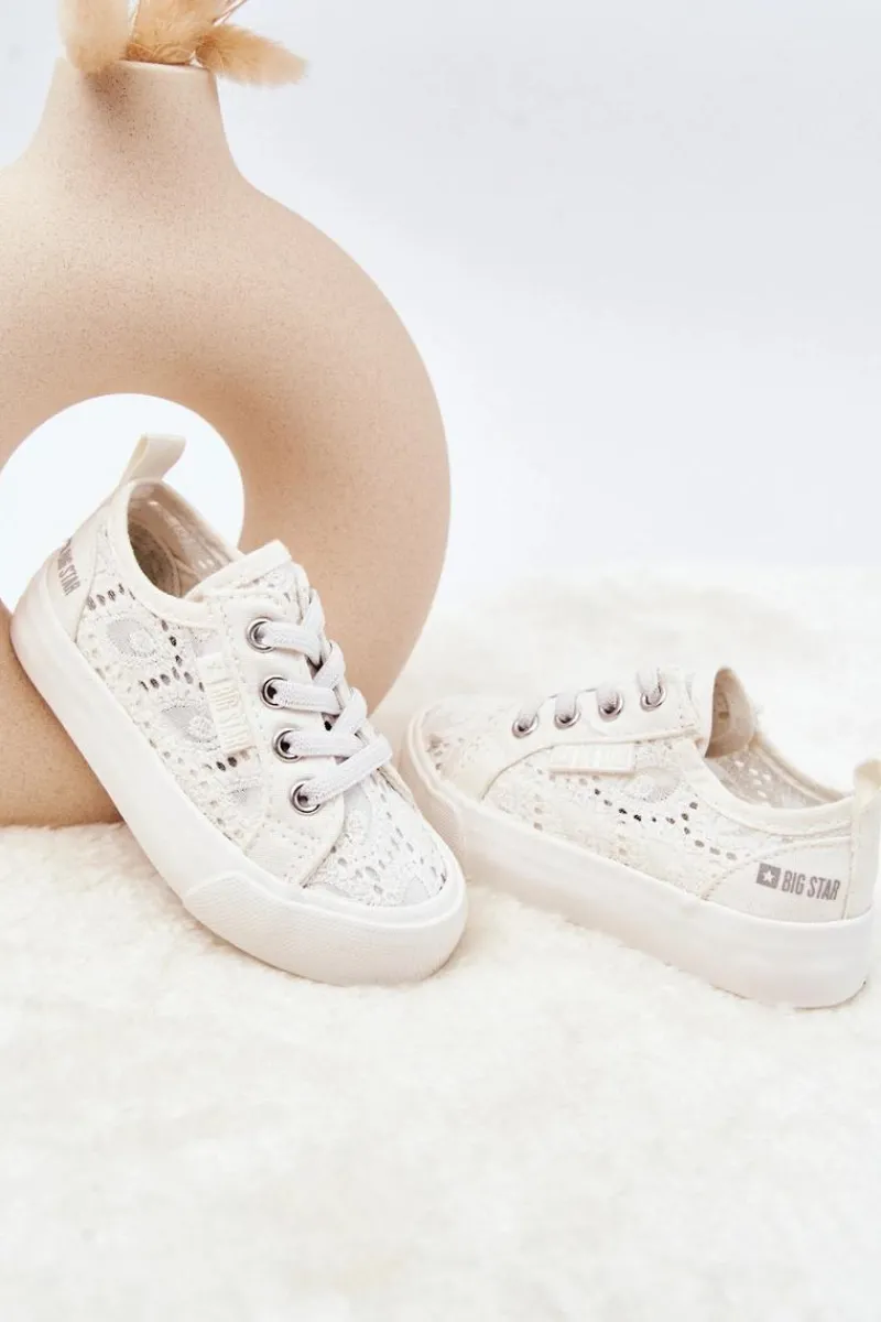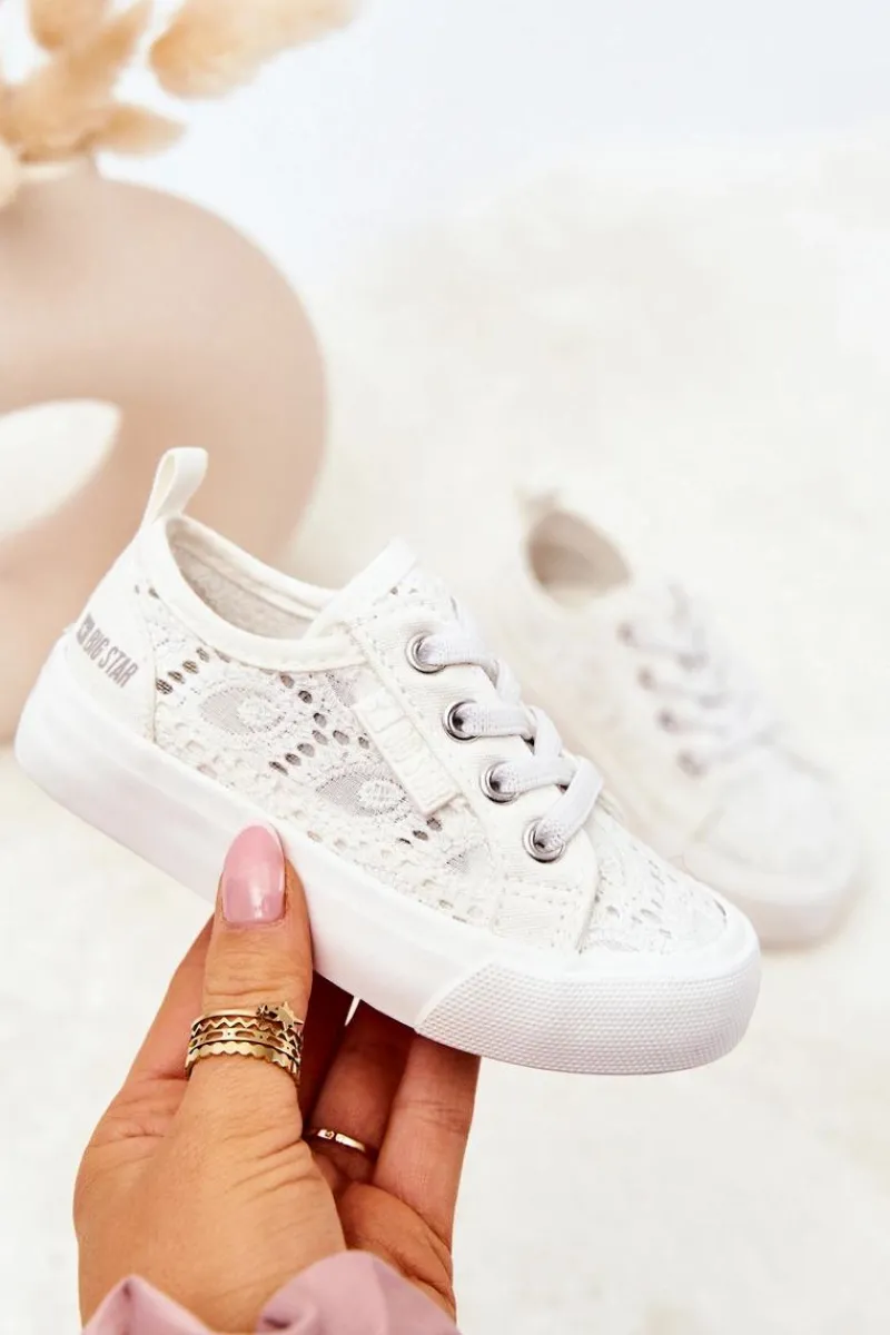 Cudowne trampki dziecięce marki BIG STAR. Trampki wykonane są z materiału tekstylnego w ażurowy wzór. Posiadają antypoślizgową podeszwę. Miękka wkładka zapewni komfort podczas noszenia. Trampki są wsuwane, posiadają gumki imitujące sznurówki. Z boku widnieje logo marki Big Star. Koniecznie sprawdź całą naszą kolekcję butów marki BIG STAR! Rozmiary 17-21 posiadają po 3 oczka do sznurówek, rozmiary 22-27 posiadają po 4 oczka, a rozmiary 28-35 posiadają po 5 oczek. Przy wyborze rozmiaru prosimy sugerować się tabelą rozmiarów.