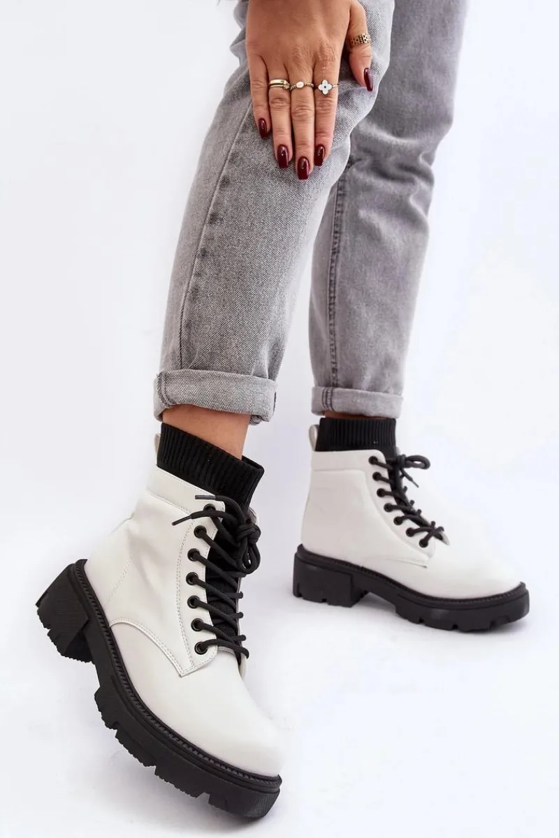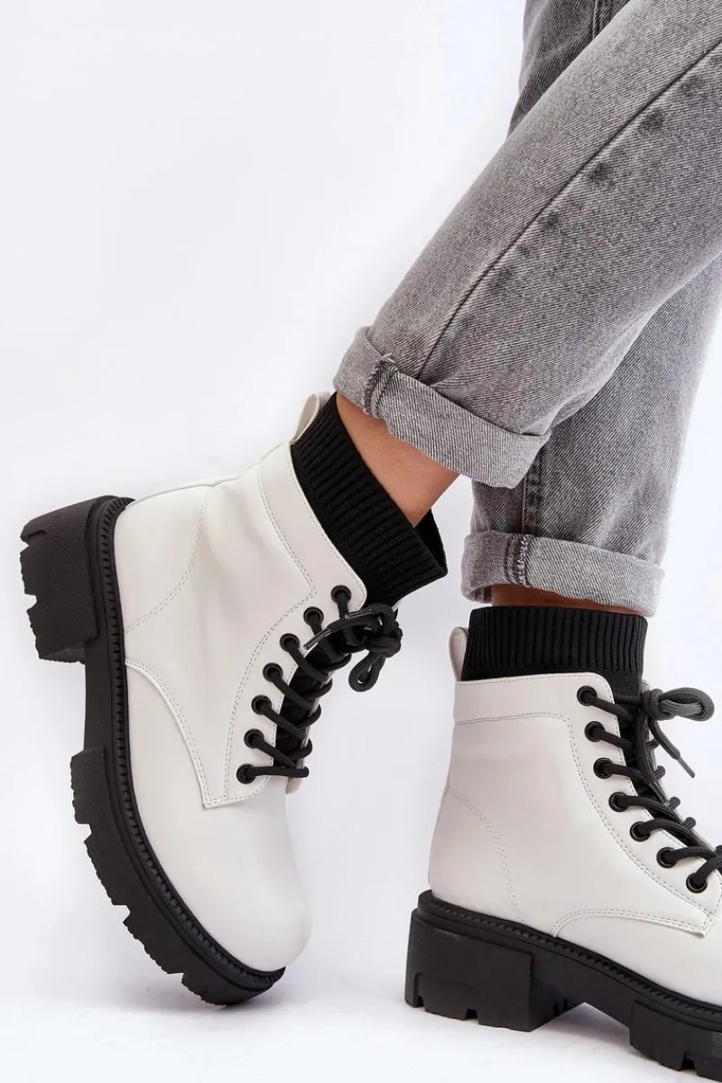 Damskie trapery wykonane z eko skóry. Osadzone na masywnym, płaskim obcasie oraz platformie. Model wsuwany z cholewką za kostkę. Z przodu sznurowanie. Noski zaokrąglone. Usztywniony zapiętek. Ten klasyczny model wykorzystasz do wielu jesienno-zimowych stylizacji! Przy wyborze rozmiaru prosimy sugerować się tabelą rozmiarów.