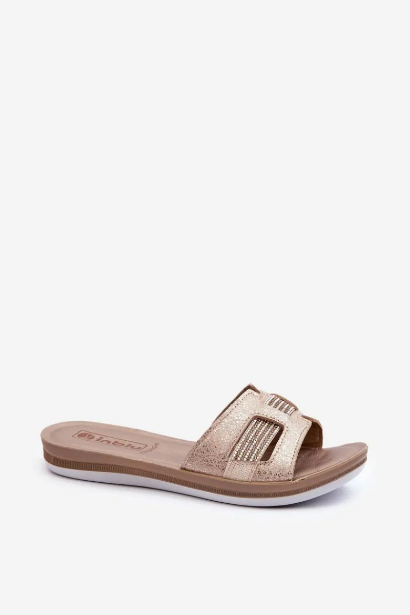 Lekkie damskie klapki od marki INBLU. Osadzone na płaskiej, elastycznej podeszwie. Miękka wkładka z eko skóry. Model ten zapewnia wysoki komfort użytkowania. Idealne do codziennych stylizacji! Przy wyborze rozmiaru prosimy sugerować się tabelą rozmiarów.