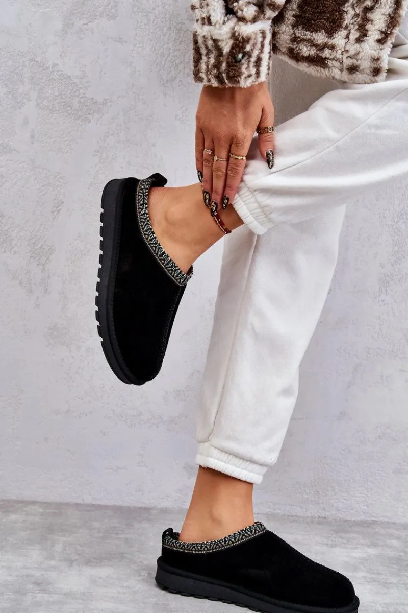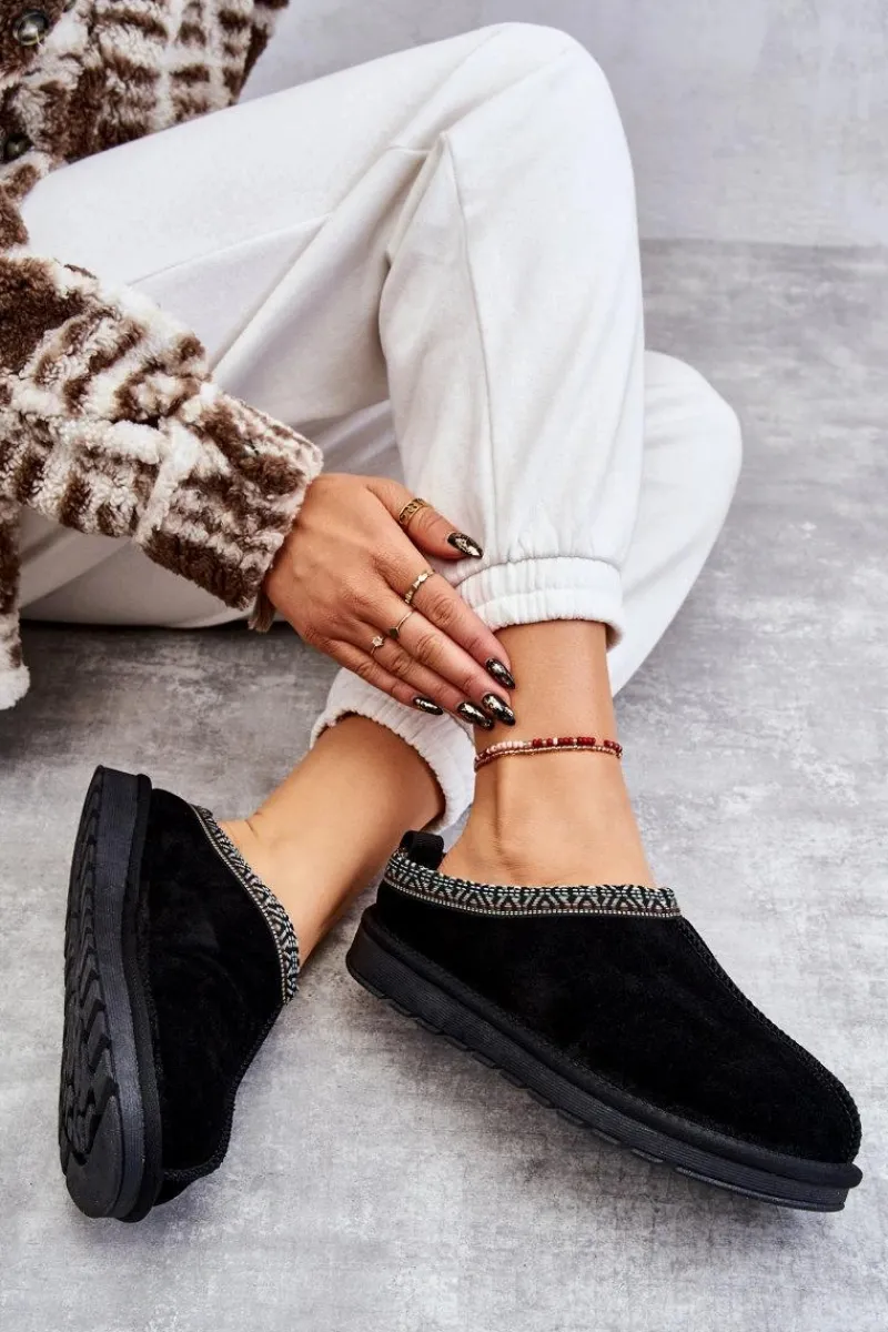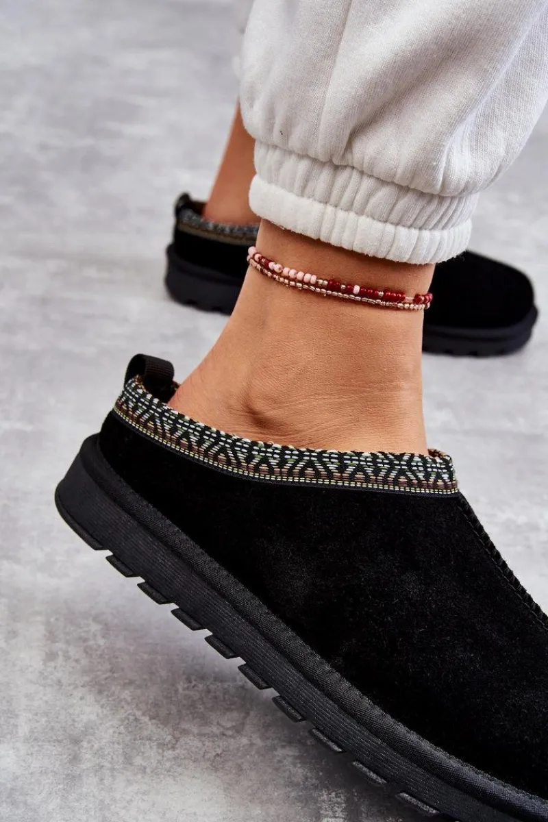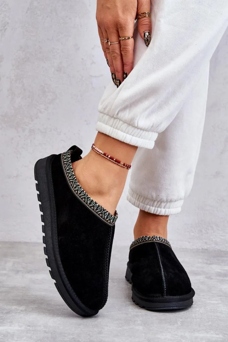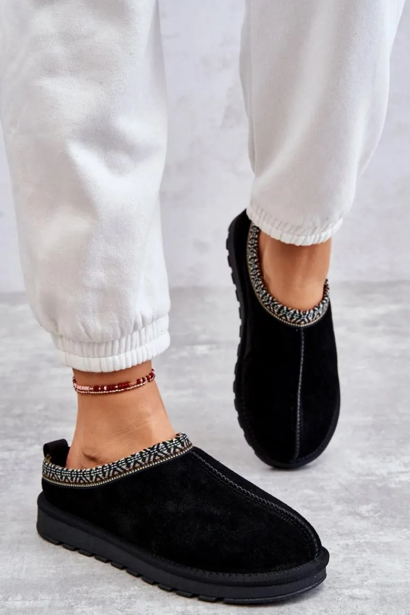 Te wsuwane papcie to idealny wybór na mroźne dni do domowego zacisza! Wykonane z wysokiej jakości naturalnych skór, z dodatkowym zdobieniem na cholewce. Papcie osadzone na masywnej platformie, z antypoślizgową podeszwą. Papcie zostały ocieplone wewnątrz miłym w dotyku, grubym futerkiem. Przy wyborze rozmiaru prosimy kierować tabelą rozmiarów.
