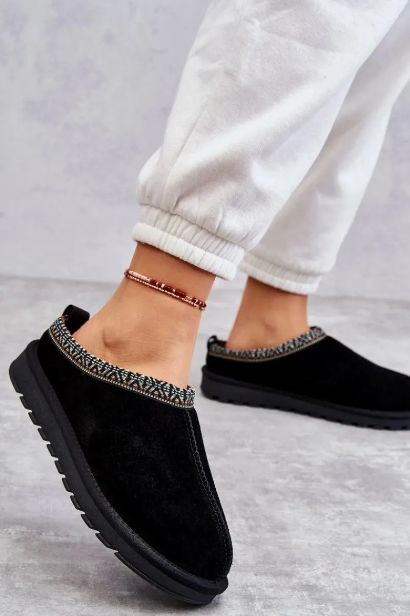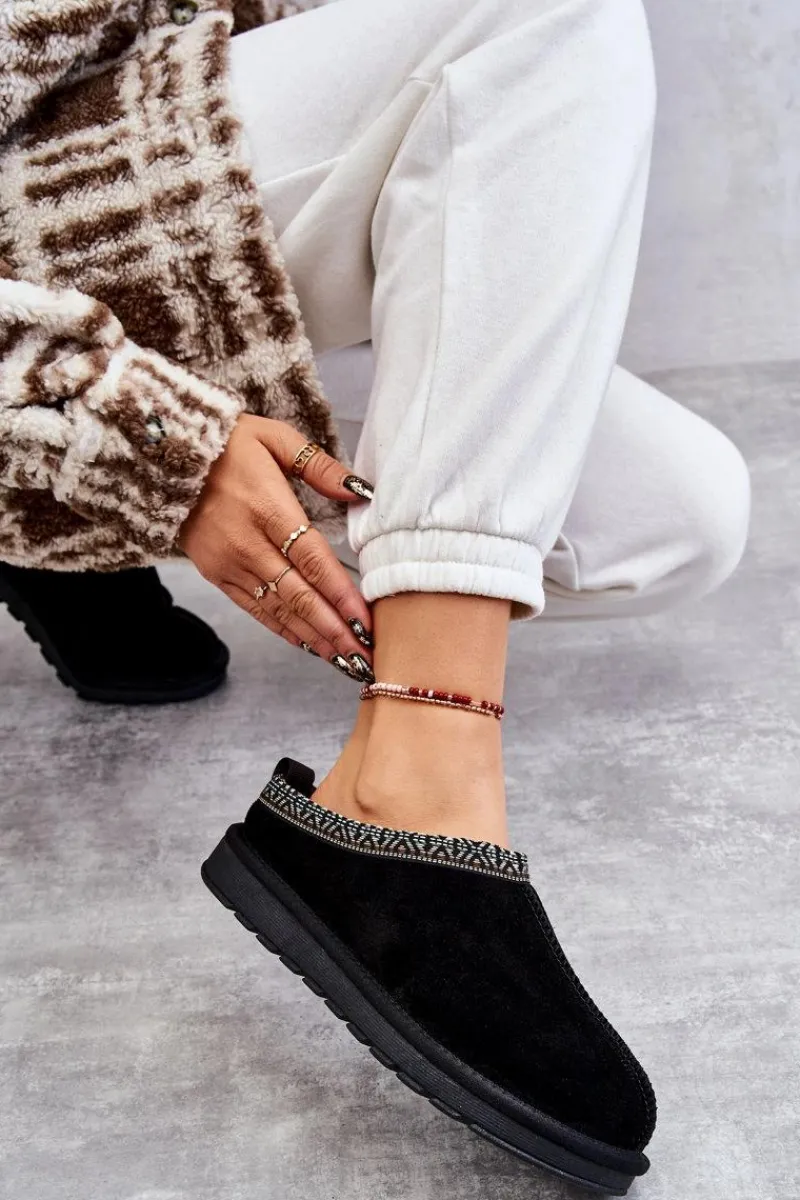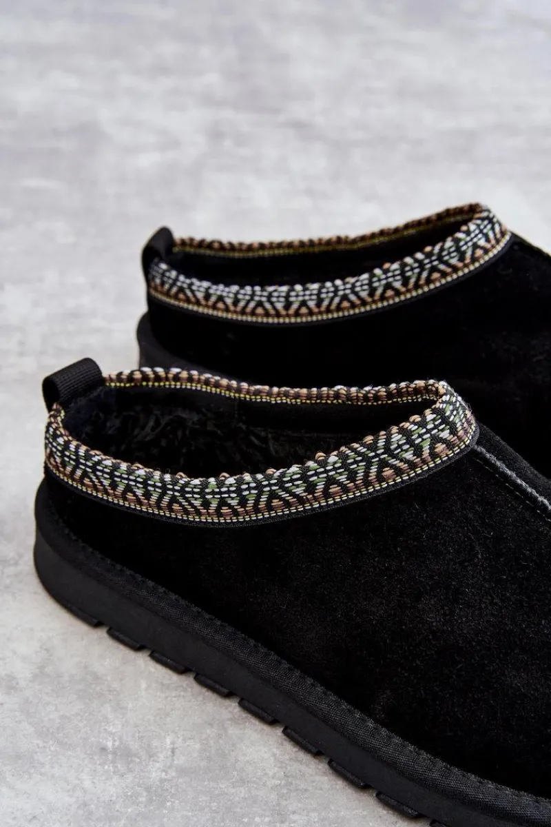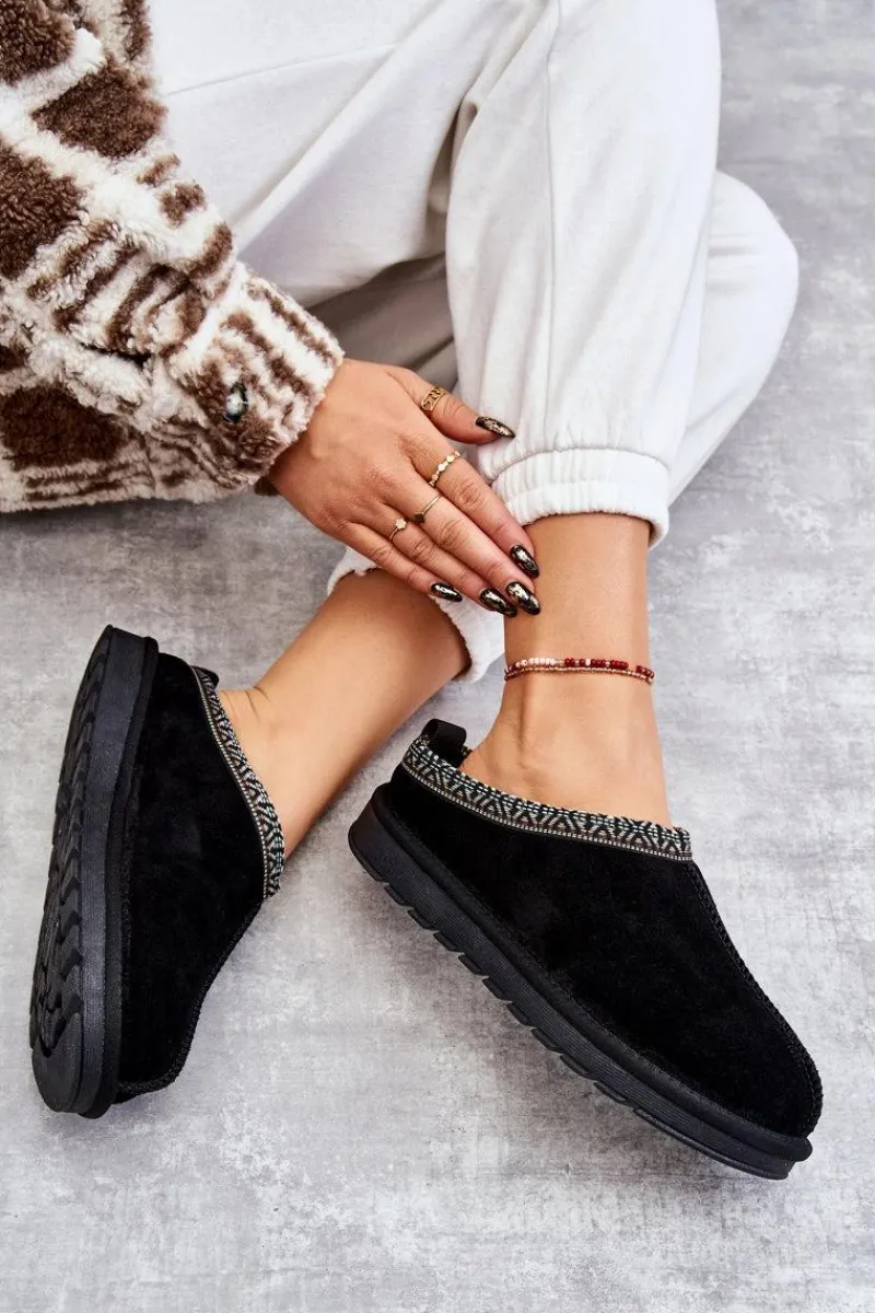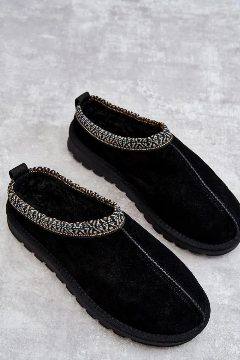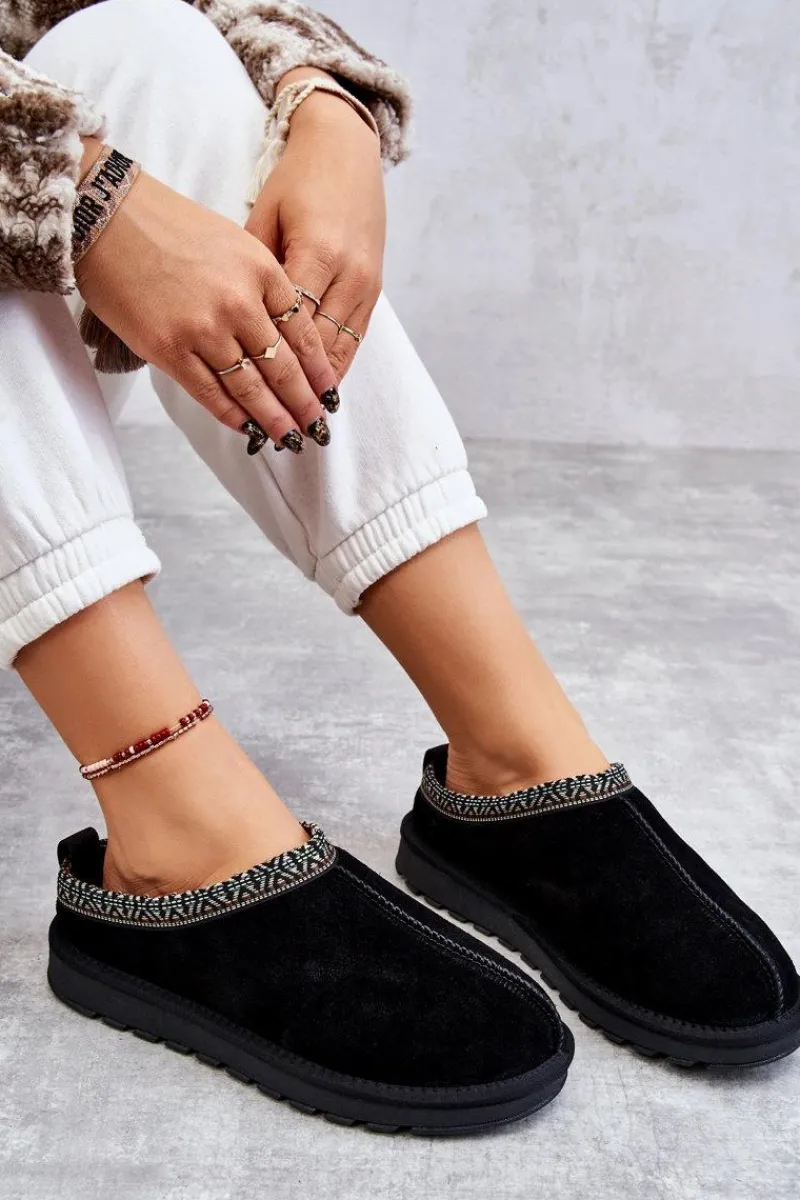 Te wsuwane papcie to idealny wybór na mroźne dni do domowego zacisza! Wykonane z wysokiej jakości naturalnych skór, z dodatkowym zdobieniem na cholewce. Papcie osadzone na masywnej platformie, z antypoślizgową podeszwą. Papcie zostały ocieplone wewnątrz miłym w dotyku, grubym futerkiem. Przy wyborze rozmiaru prosimy kierować tabelą rozmiarów.