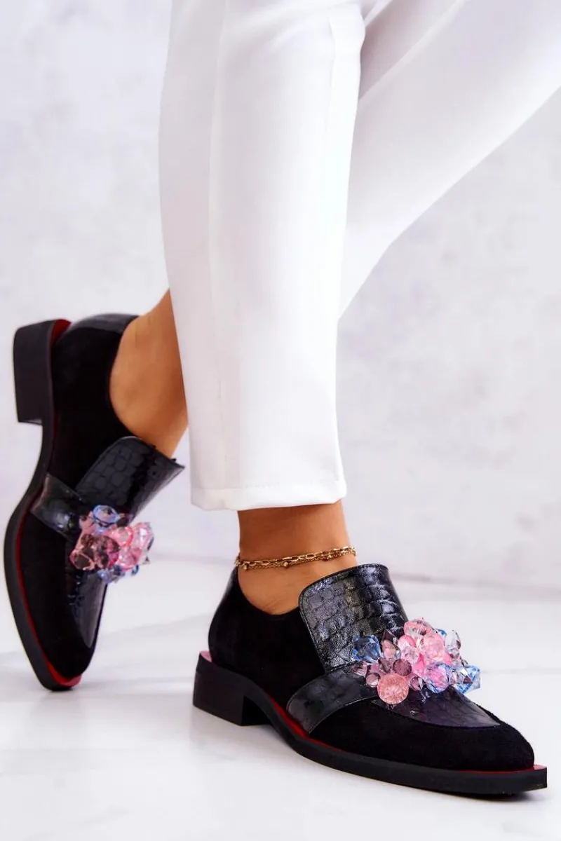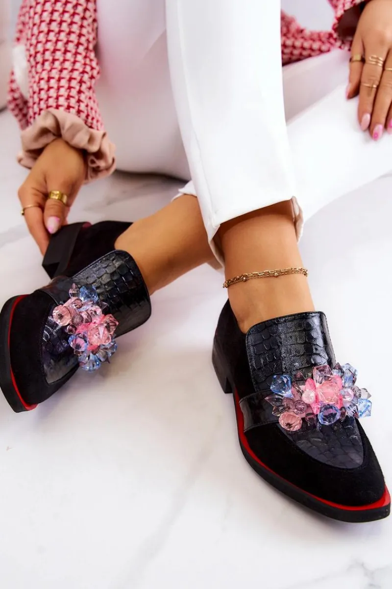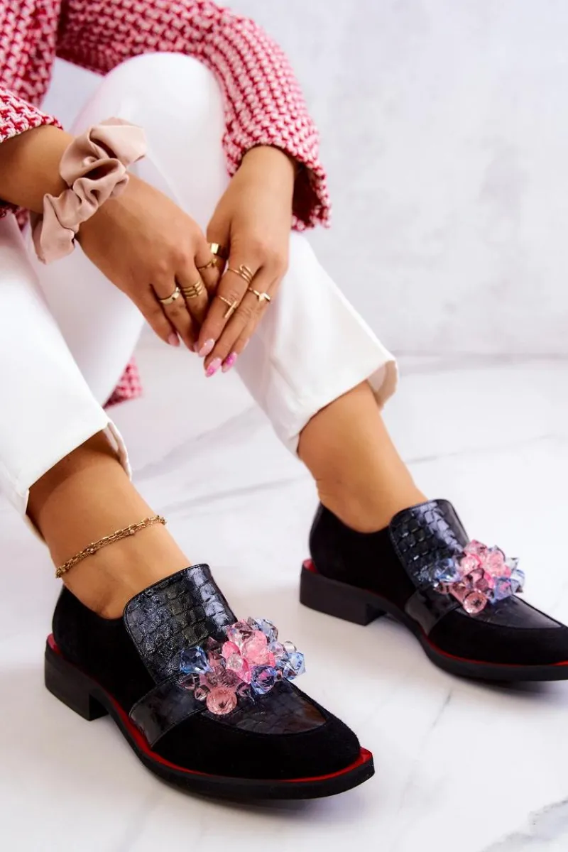 Półbuty są wykonane z naturalnej skóry. Modny krokodyli wzór na przodzie oraz tyle. Miękka wkładka z naturalnej skóry daje poczucie komfortu na każdym kroku. Buty wykonane z dbałością o szczegóły. Piękna ozdoba na przodzie nadaje butom elegancji! Buty posiadają niewysoki obcas. Nie zwlekaj i kup już dziś! Przy wyborze rozmiaru prosimy sugerować się tabelą rozmiarów.
