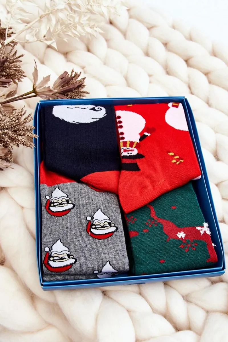 Wyjątkowe męskie skarpetki w świątecznym wydaniu! Zestaw zawiera cztery pary męskich skarpetek. Wykonane zostały głównie z bawełny. Posiadają delikatny ściągacz, który dopasuje się do tęgości nogi. Skarpetki są zapakowane w ozdobne, świąteczne pudełko. Idealnie sprawdzą się na prezent dla bliskiej osoby!