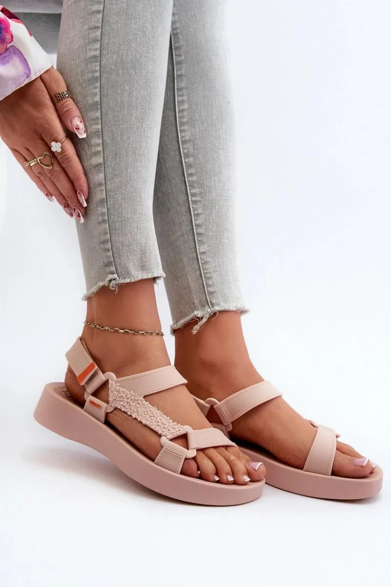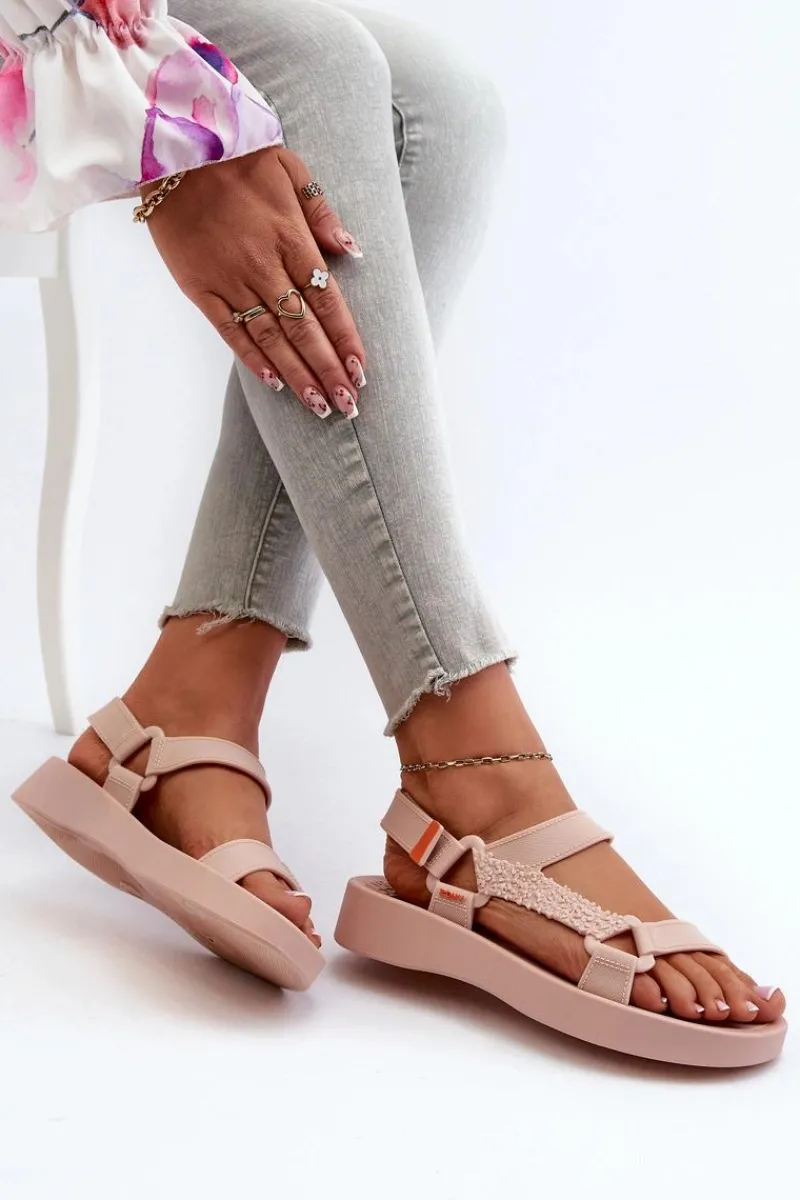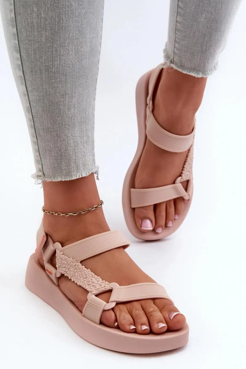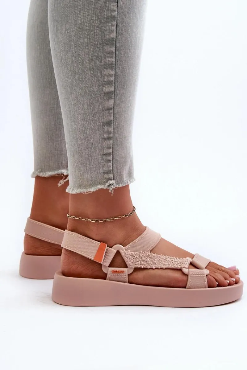 Elastyczne sandały damskie marki ZAXY to idealne obuwie na letnie dni. Zapinane na rzep, co zapewni idealne dopasowanie do stopy. Wykonane z wysokogatunkowego tworzywa. Z boku ozdobny pasek z małymi kwiatuszkami. Zaxy to pachnące gumą balonową buty, które na pewno przypadną Ci do gustu! Przy wyborze rozmiaru prosimy kierować się tabelą rozmiarów.