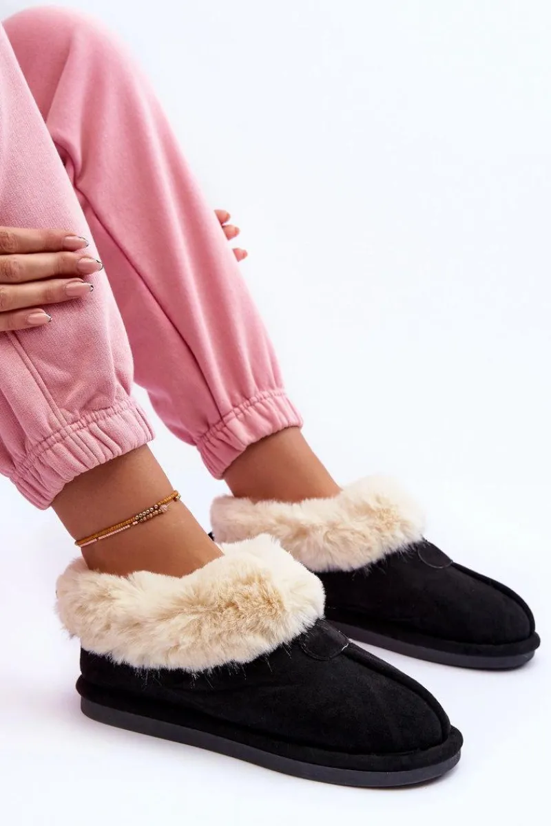 Te wsuwane papcie to idealny wybór na mroźne dni do domowego zacisza! Wykonane z eko zamszu. Ocieplone wewnątrz miłym w dotyku, grubym futerkiem. Miękka wkładka zapewni komfortowe użytkowanie obuwia. Model ten osadzony jest na niskiej platformie i antypoślizgowej podeszwie. Przy wyborze rozmiaru prosimy kierować tabelą rozmiarów.