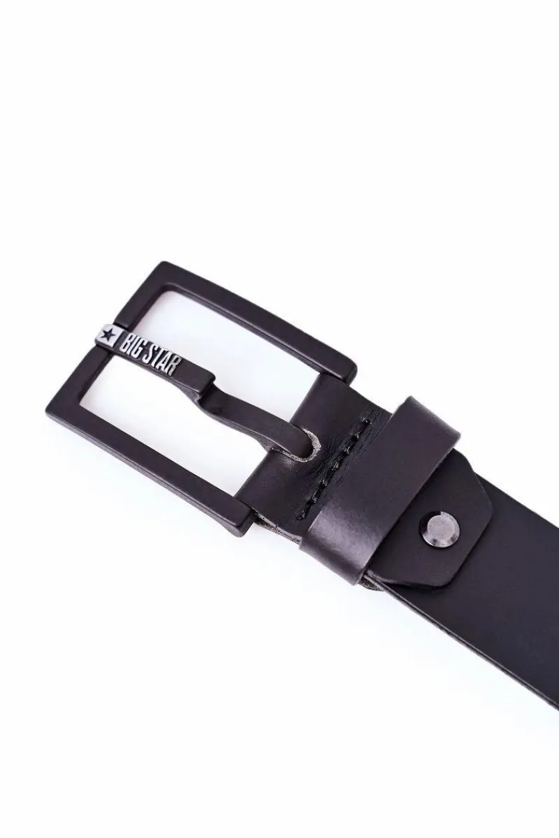 Czarny pasek BIG STAR wykonano z czarnej, naturalnej skóry, uzupełniono go klasyczną, włoską klamrą. Koniecznie sprawdź całą naszą kolekcję pasków BIG STAR. Długość paska mierzona jest od klamry do środkowej dziurki.