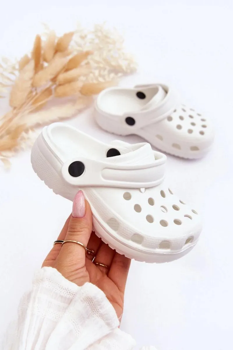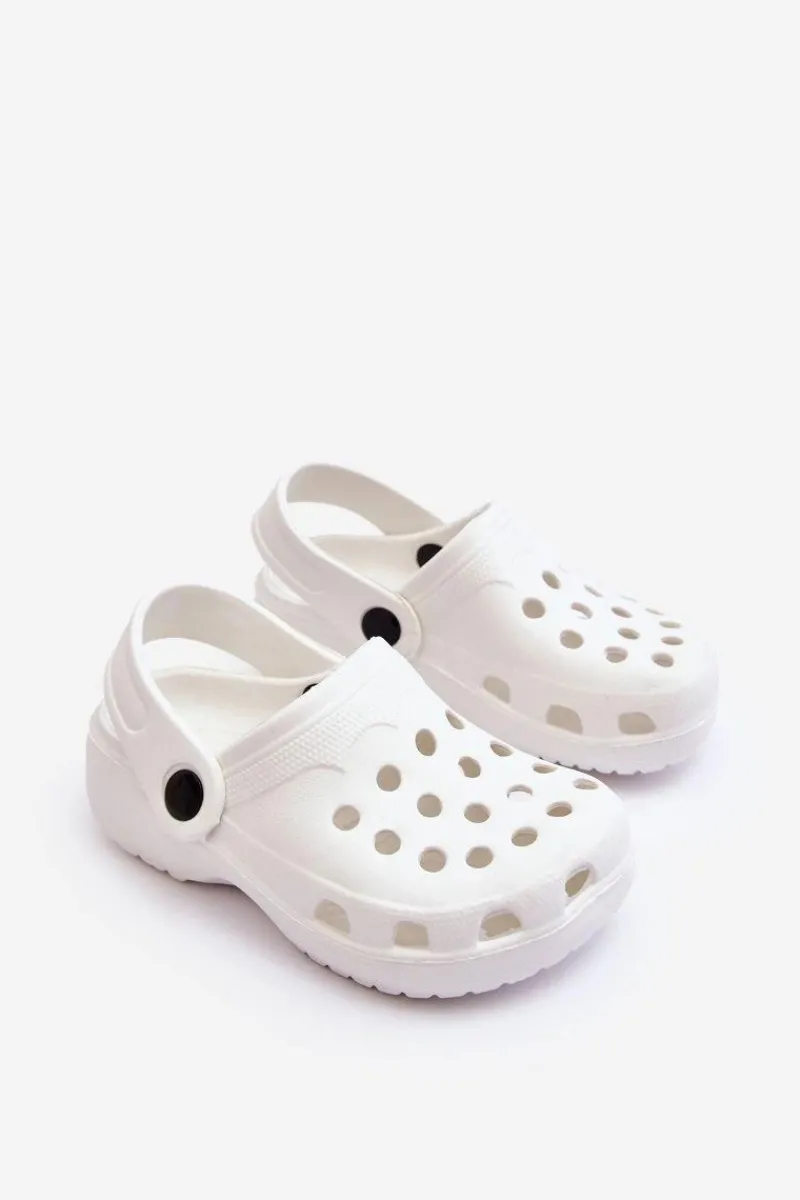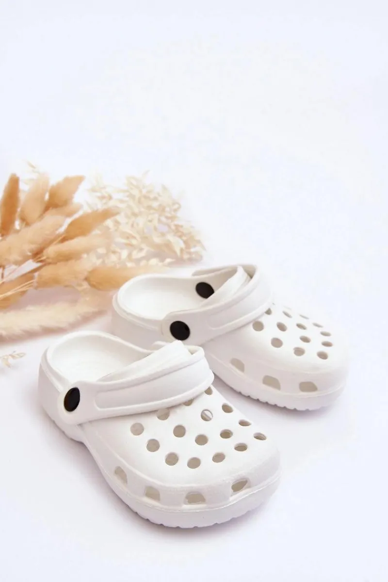 Piankowe Dziecięce Kroksy Klapki Białe Percy Dzieci Chłopięce|Dziewczęce