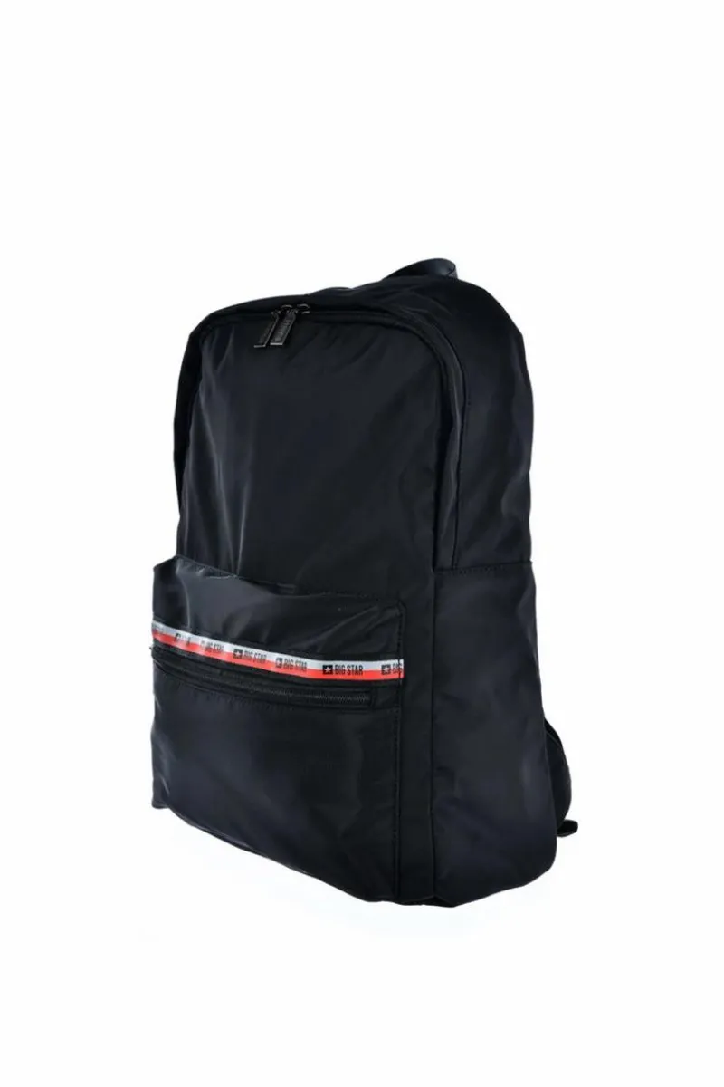 Plecak wykonany jest z tkaniny odpornej na zabrudzenia. Posiada jedną komorę, a wewnątrz trzy otwarte kieszenie. Na zewnątrz znajduje się jedna mniejsza kieszonka zapinana na suwak. Z tyłu został wykonany z perforowanej tkaniny. Paski można regulować, więc odpowiednio je dopasujesz. Koniecznie sprawdź całą naszą kolekcję akcesoriów marki BIG STAR!