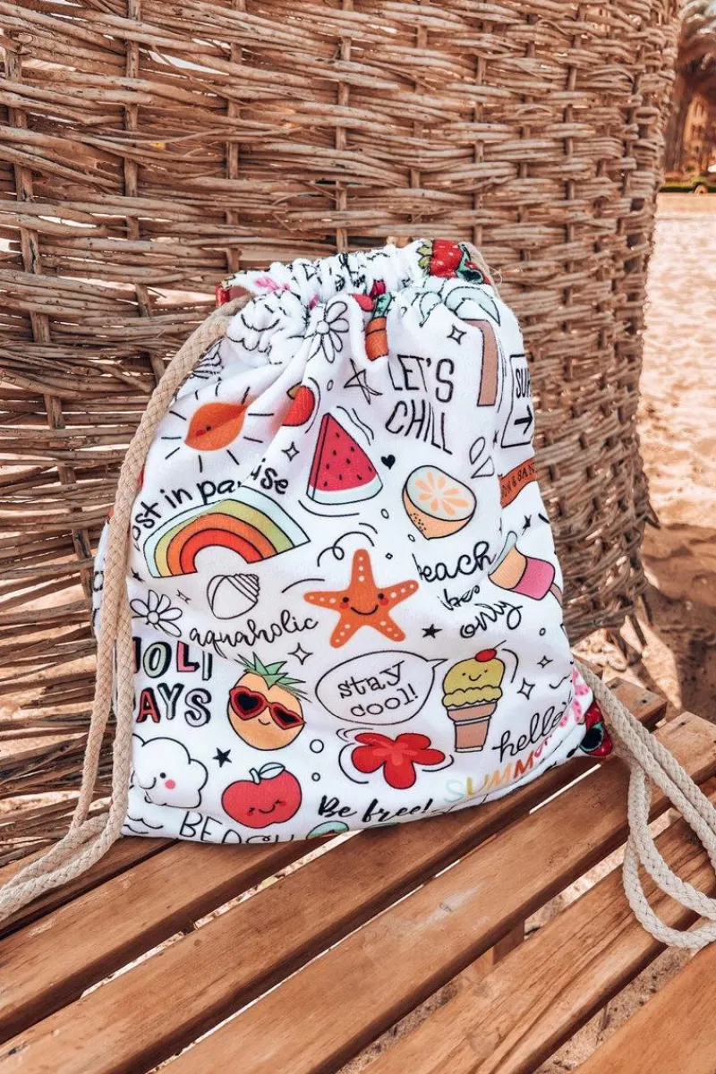 Plecak plażowy 3w1. Produkt lekki, a także przyjemny w dotyku. Torba posiada podwójne plecione ucha i ściągacz u góry. Plecak wyposażony jest w dodatkowy ręcznik, który idealnie sprawdzi się podczas urlopu czy wakacji na piaszczystej plaży. Bardzo funkcjonalny i łatwy do złożenia. Skład: 65 % poliester, 35 % bawełna.