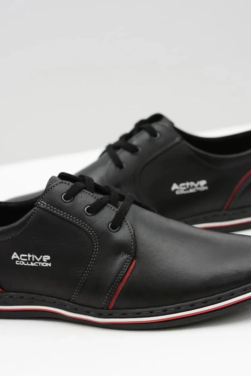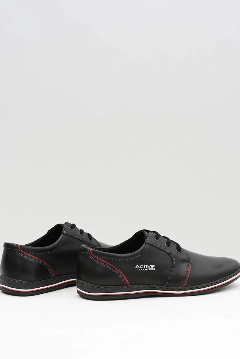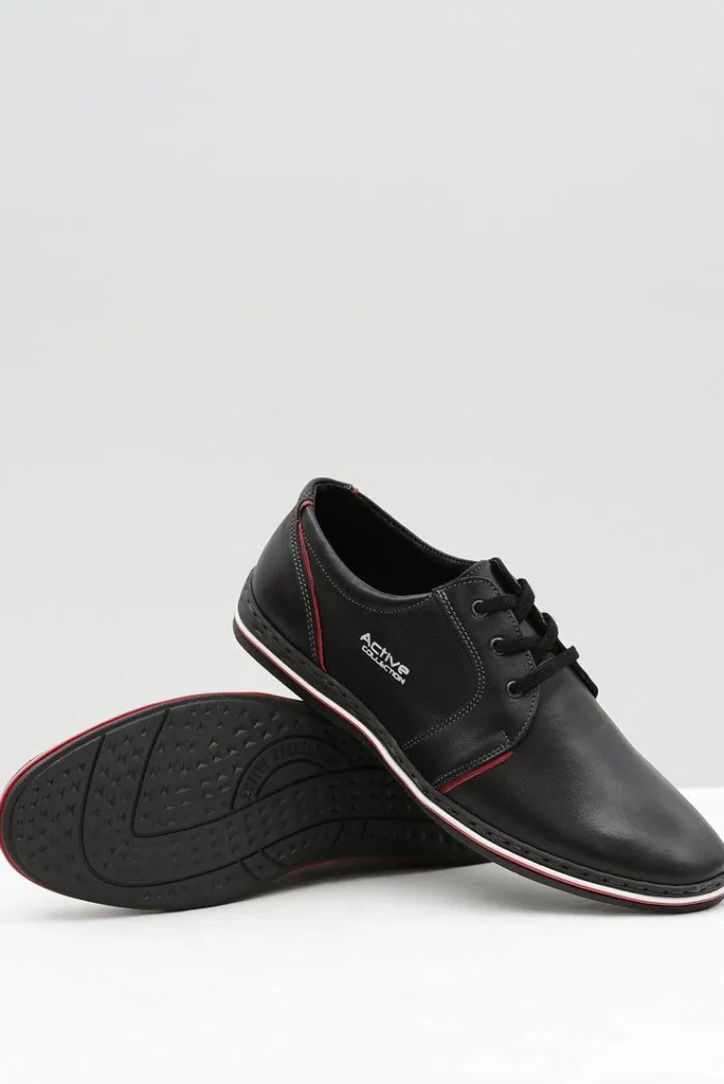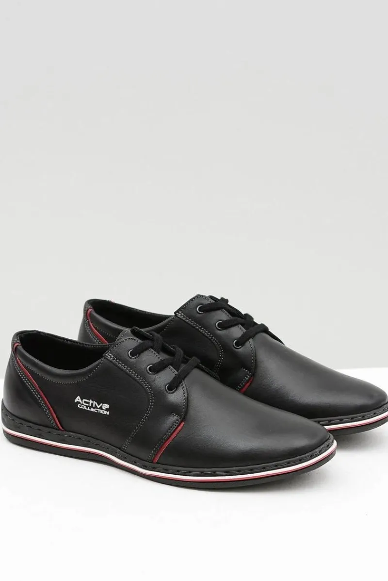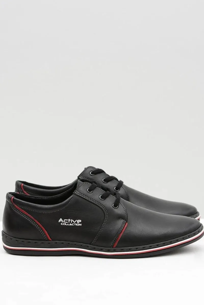Półbuty Casual>Boto Czarne Skórzane Męskie Półbuty Marko