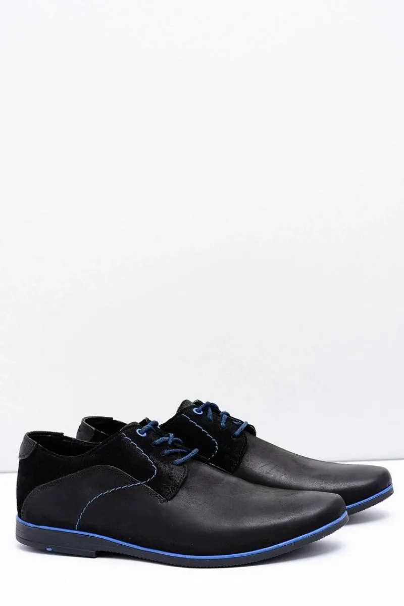 Półbuty Casual>Boto Czarne Skórzane Półbuty Męskie Penegro