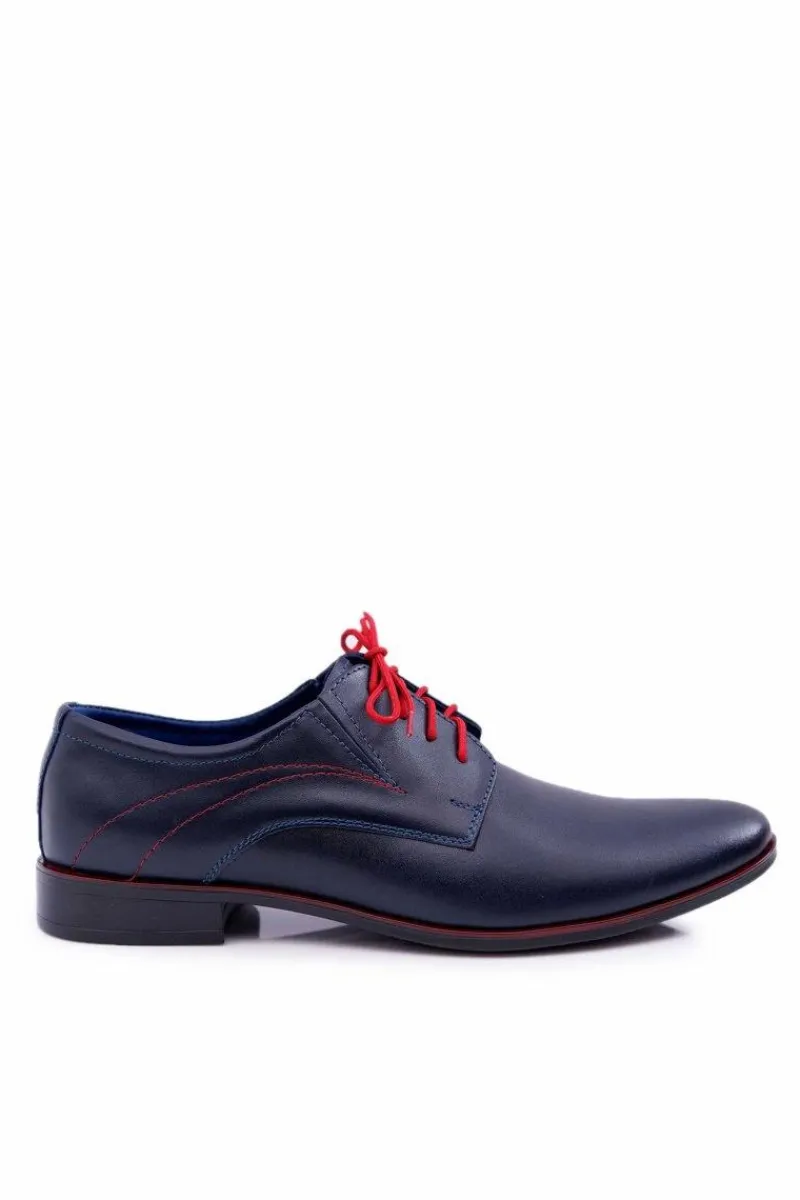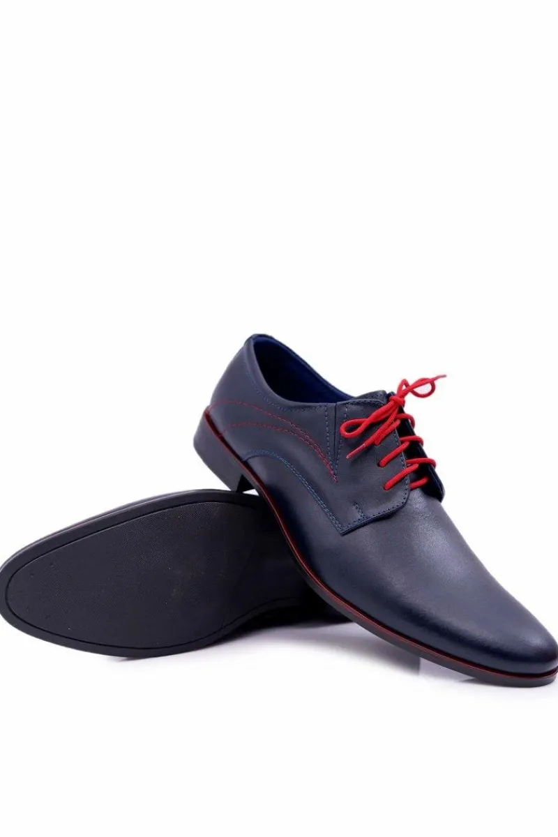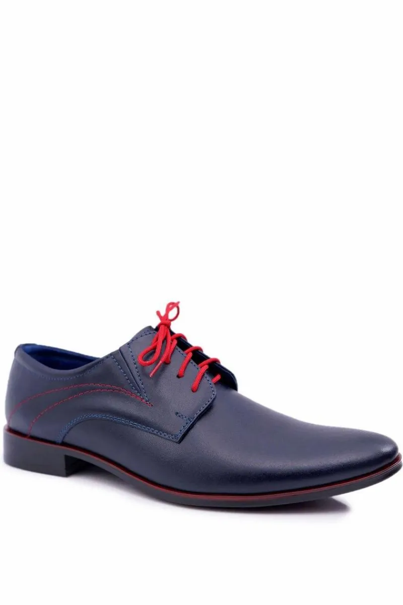 Półbuty Eleganckie>Boto Półbuty Męskie Eleganckie Skórzane Granatowe Menelaos
