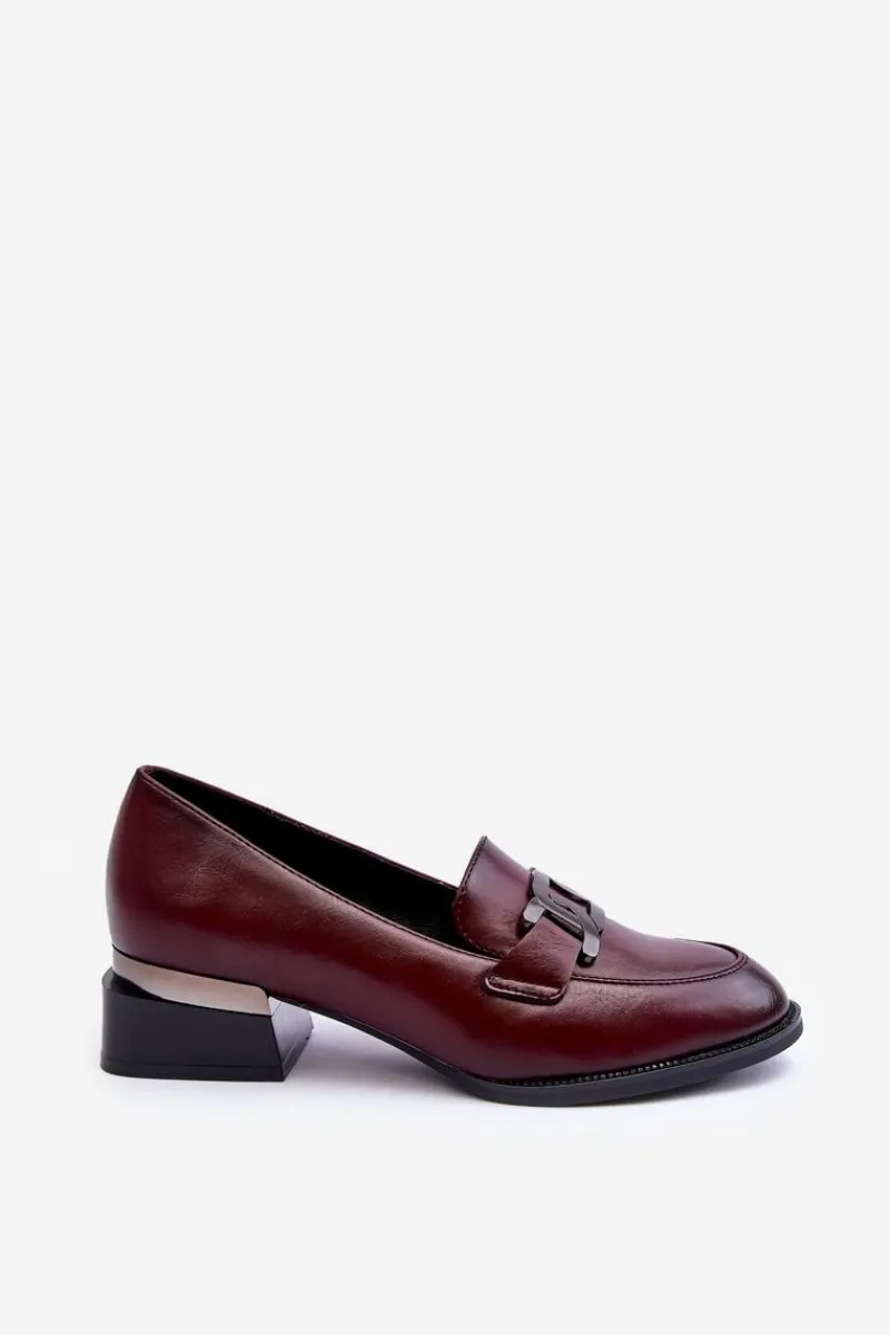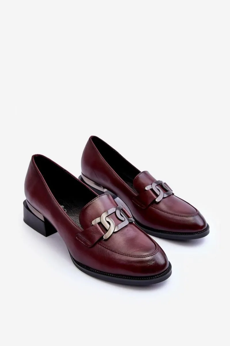 Eleganckie półbuty damskie osadzone na obcasie w postaci niskiego klocka. Wkładka ze skóry naturalnej zapewni komfort użytkowania. Nosek w kształcie migdała. Z przodu ozdobny łańcuch, który doda elegancji. Cholewka wykonana z eko skóry. Koniecznie musisz je mieć! Nie czekaj dłużej! Przy wyborze rozmiaru prosimy sugerować się tabelą rozmiarów.