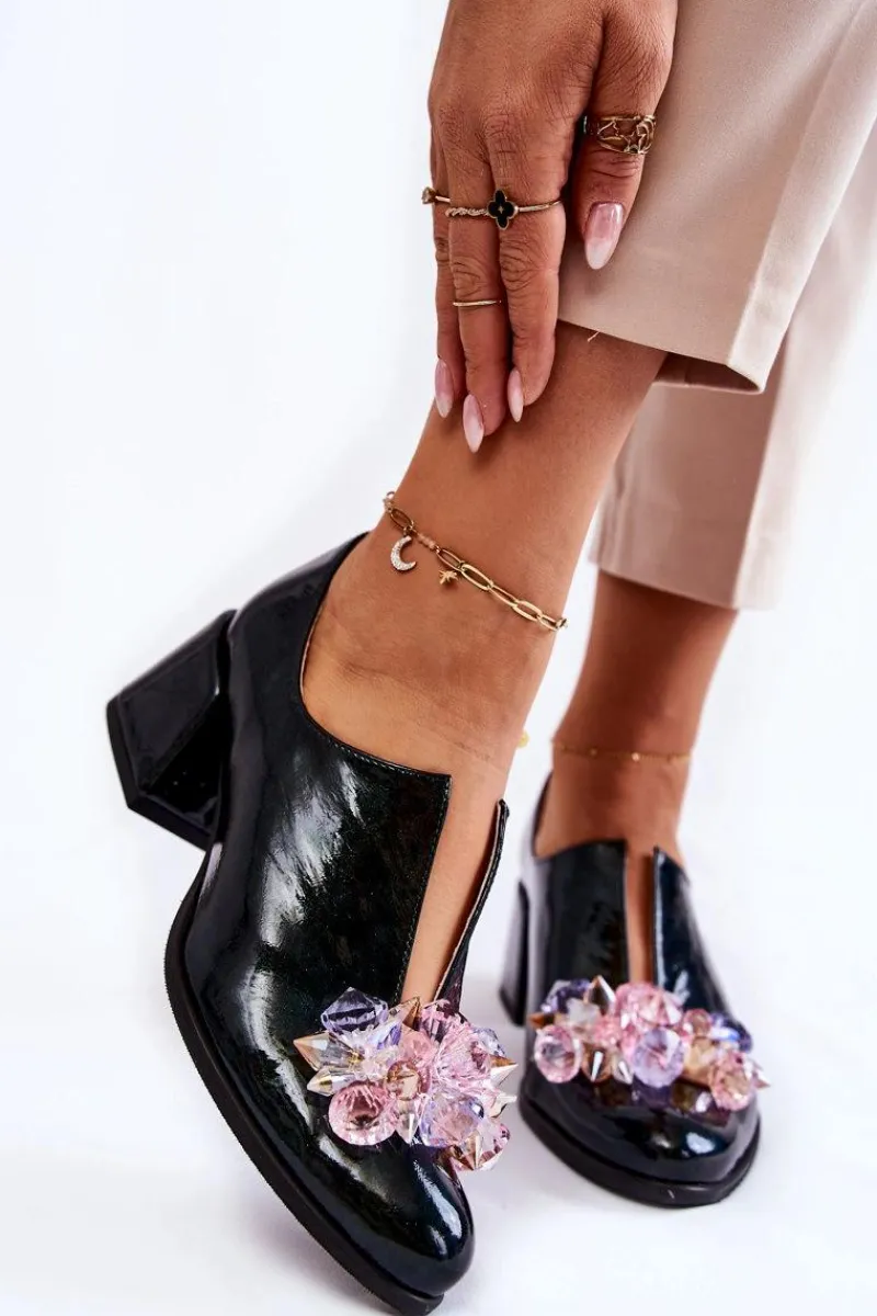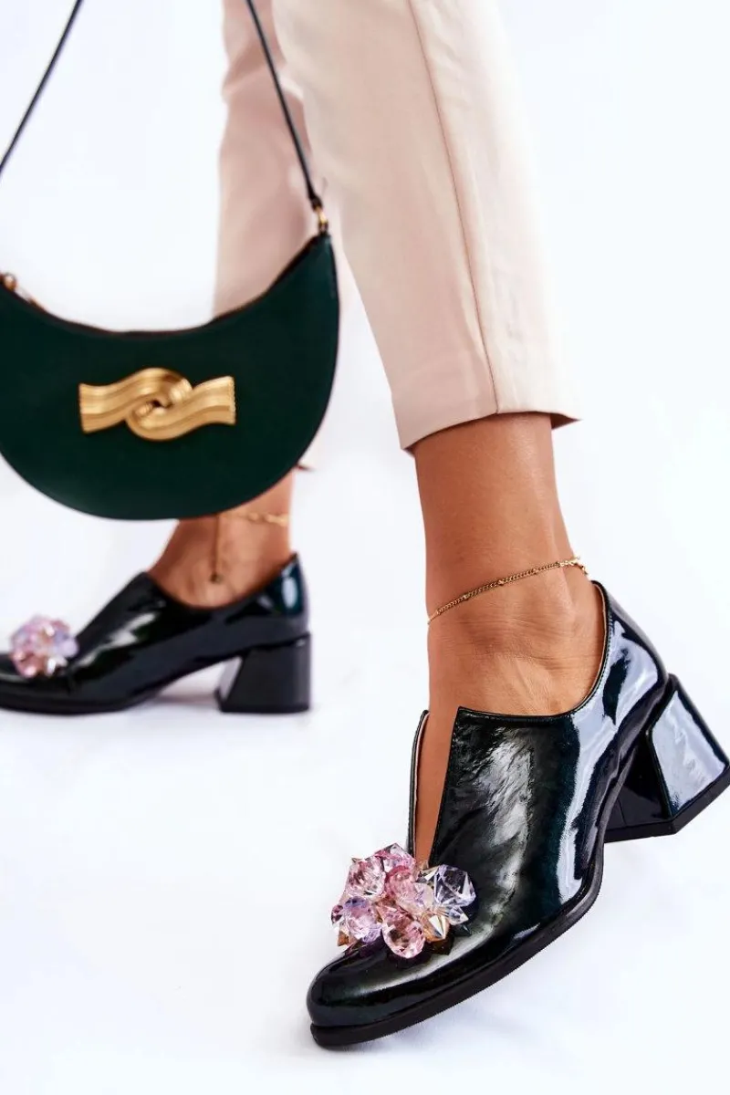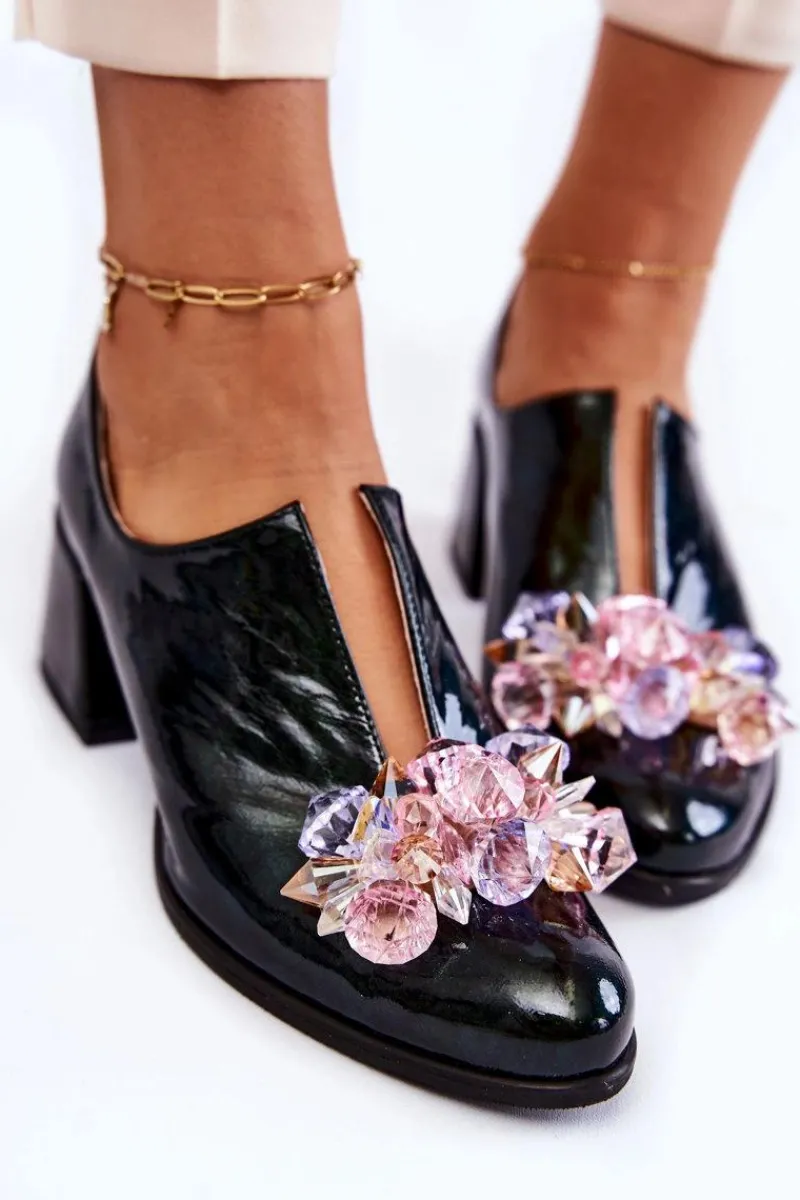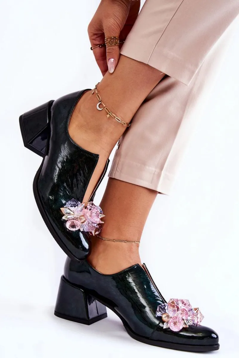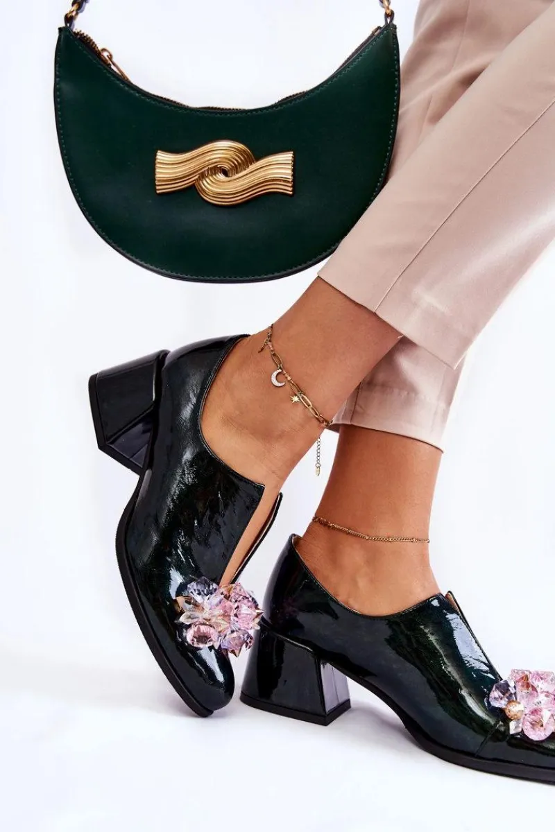 Półbuty Lakierowane|Półbuty Skórzane>Boto Lakierowane Półbuty Mozaika Z Transparentną Ozdobą Zielone Delaver