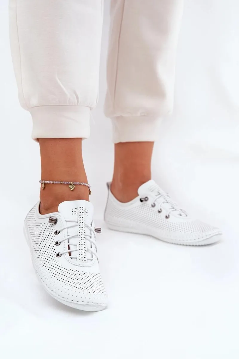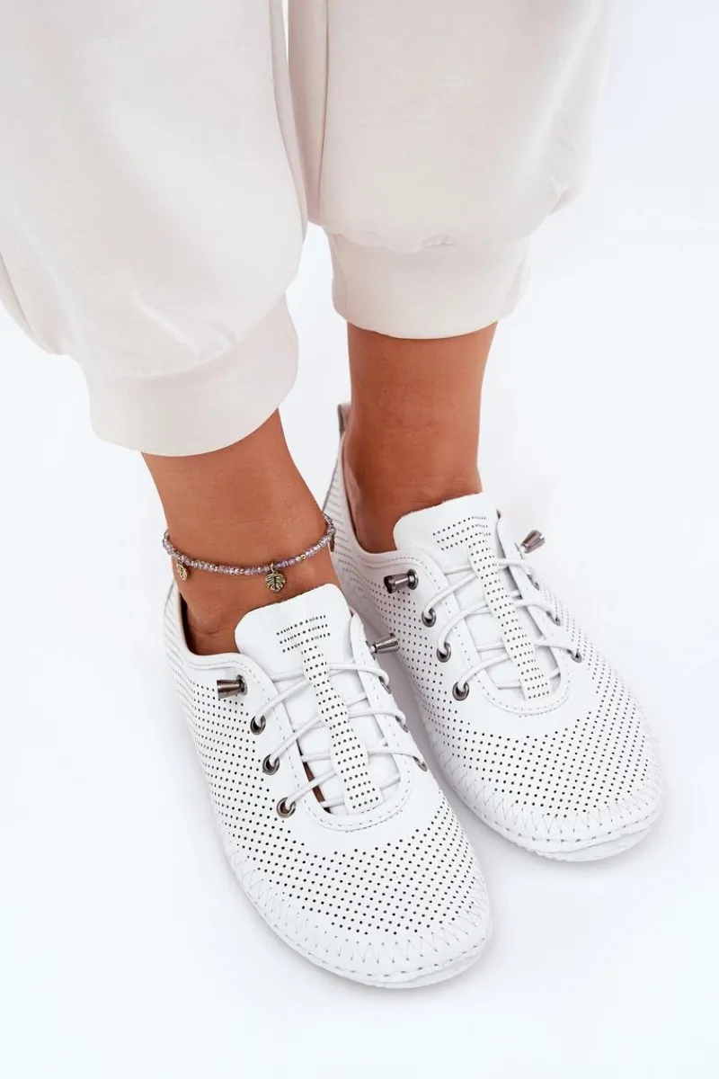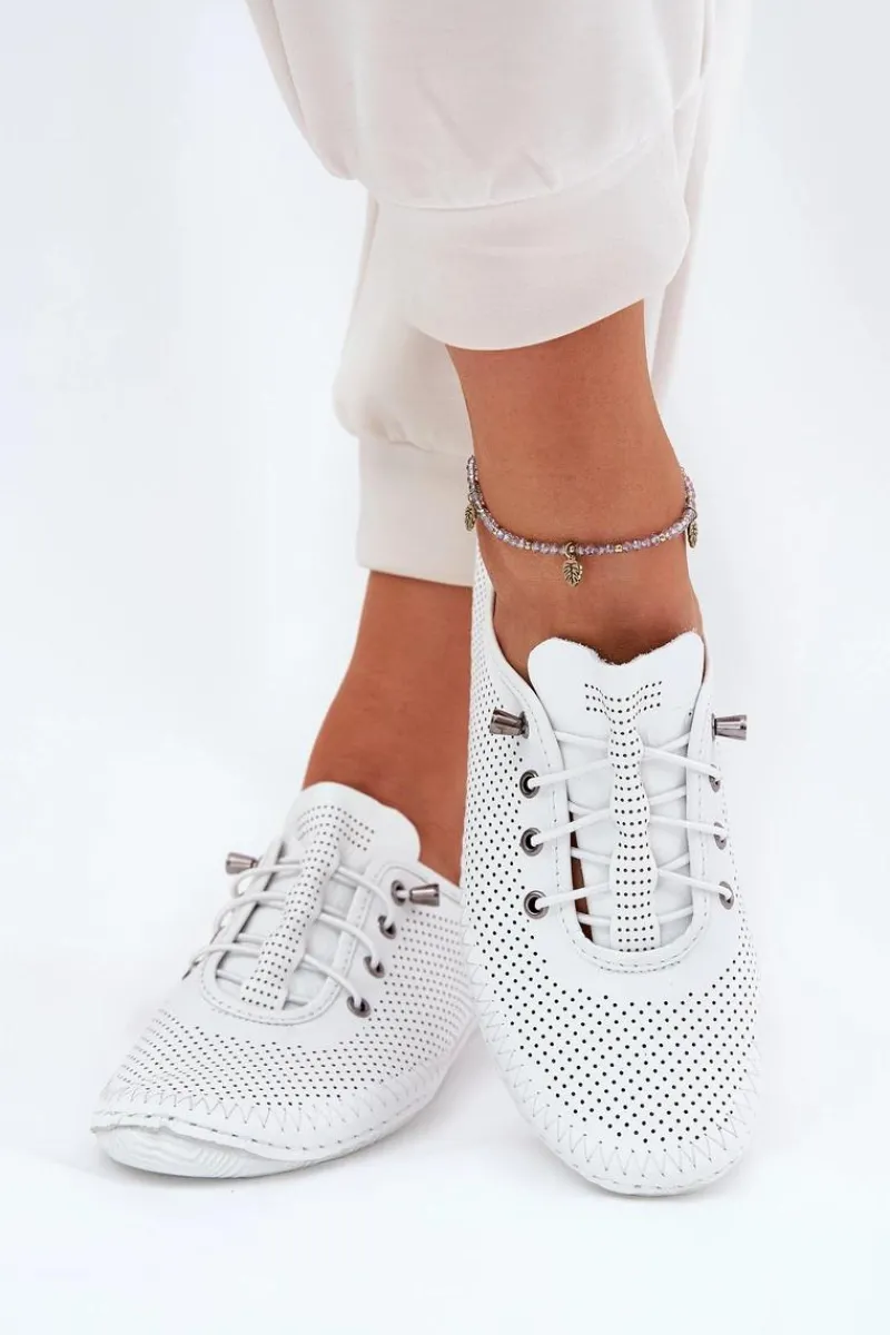 Damskie półbuty z naturalnej skóry, które łączą komfort z funkcjonalnością. Elastyczne gumki imitujące sznurówki ułatwiają zakładanie i gwarantują idealne dopasowanie do stopy. Szerokie, zaokrąglone noski zapewniają wygodę przez cały dzień, a skórzana wkładka zapewnia odpowiednią amortyzację. To świetny wybór do codziennych stylizacji, oferujący zarówno styl, jak i komfort. Przy wyborze rozmiaru prosimy sugerować się tabelą rozmiarów.