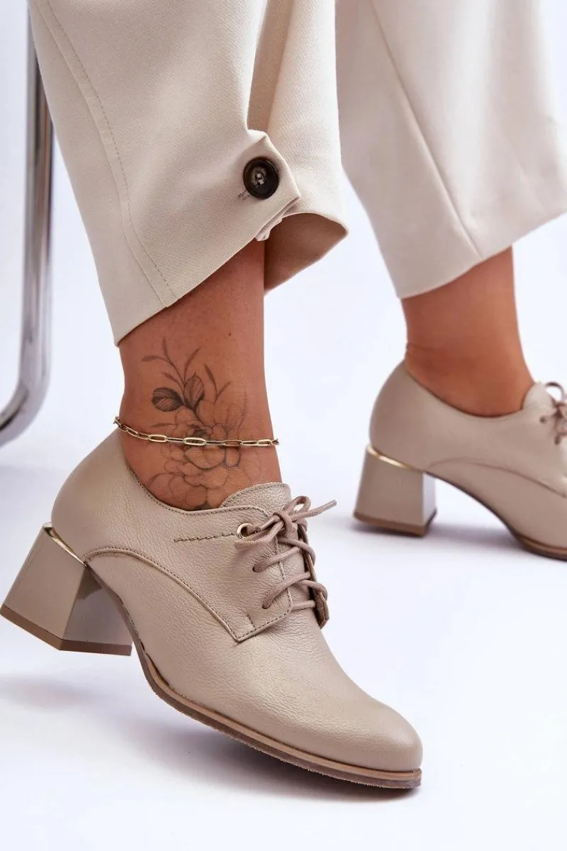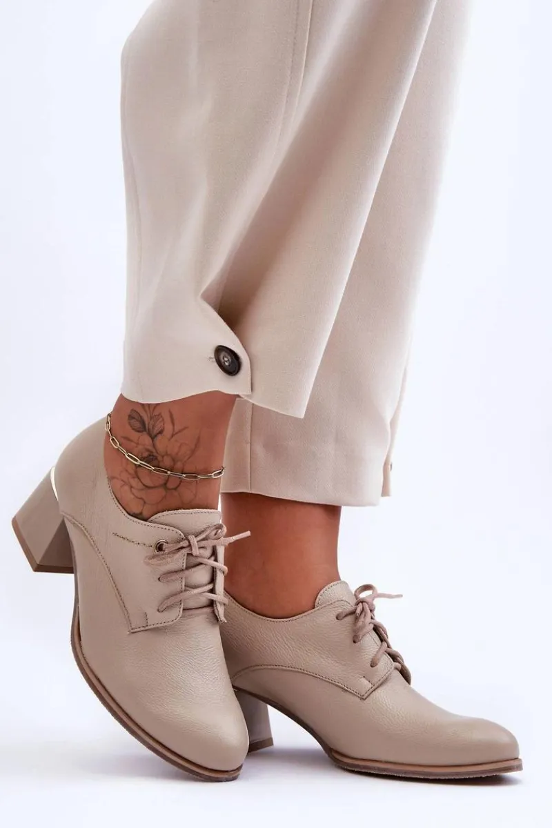 Eleganckie półbuty damskie zostały wykonane ze skóry naturalnej i osadzone na obcasie. Model ten posiada usztywniany zapiętek oraz sznurowanie. Miękka, skórzana wkładka zapewni komfortowe użytkowanie obuwia. Buty te sprawdzą się w wielu stylizacjach! Koniecznie sprawdź całą naszą kolekcję półbutów! Przy wyborze rozmiaru prosimy sugerować się tabelą rozmiarów.