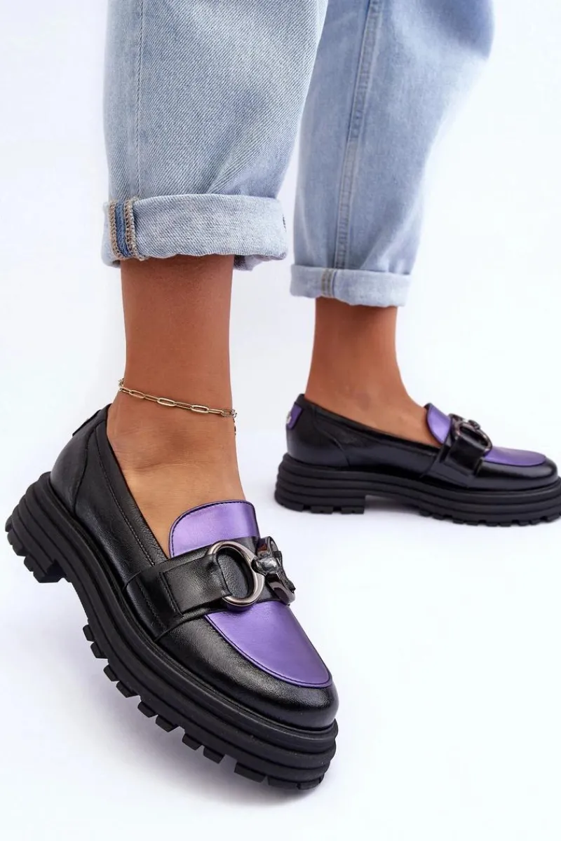 Półbuty damskie zostały wykonane ze skóry naturalnej. Osadzone na masywnej platformie oraz płaskim obcasie. Miękka wkładka ze skóry naturalnej zapewni komfort podczas użytkowania. Model klasyczny, wsuwany. Zapiętek w tym obuwiu jest usztywniony. Z przodu na pasku znajduje się ozdoba z tworzywa sztucznego. Buty te sprawdzą się w wielu stylizacjach! Koniecznie sprawdź całą naszą kolekcję półbutów! Przy wyborze rozmiaru prosimy sugerować się tabelą rozmiarów.