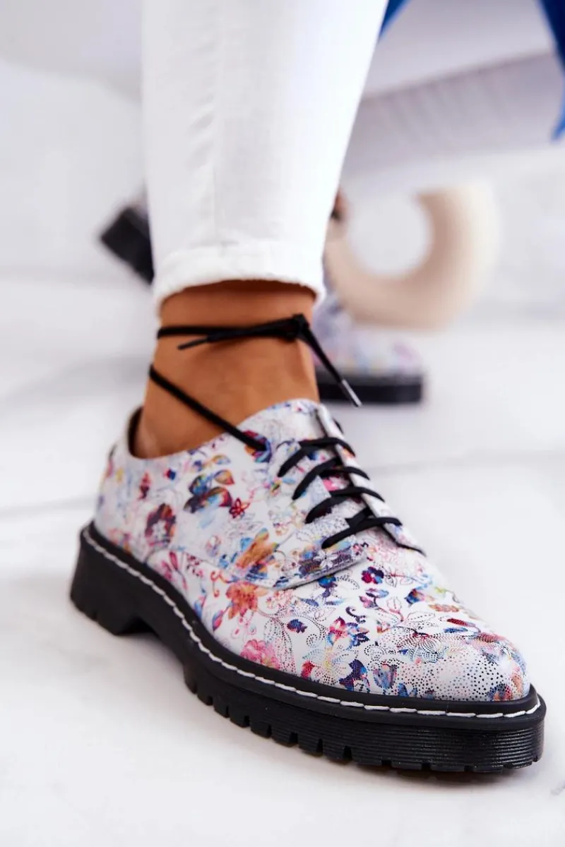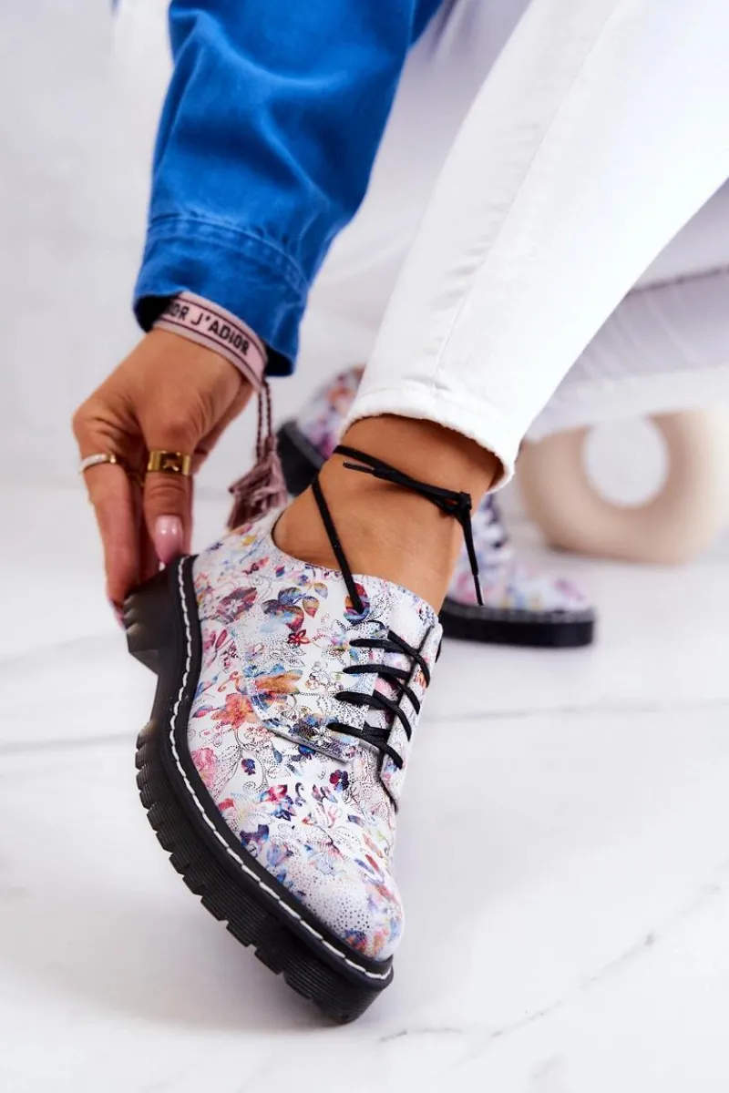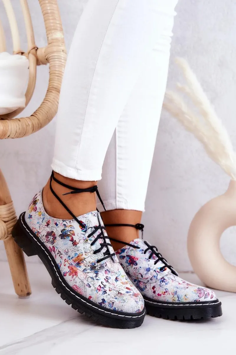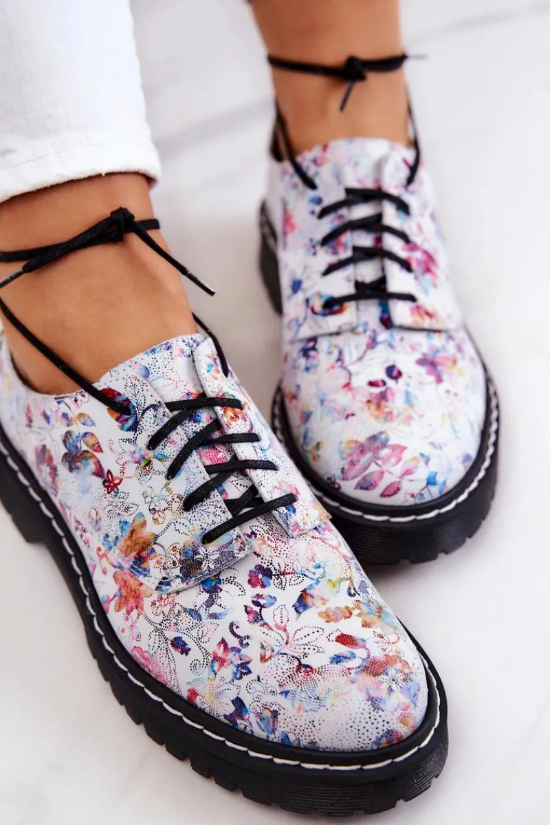 Półbuty Skórzane>Maciejka Damskie Skórzane Półbuty Oxfordy 4087A-38 Białe W Kwiaty