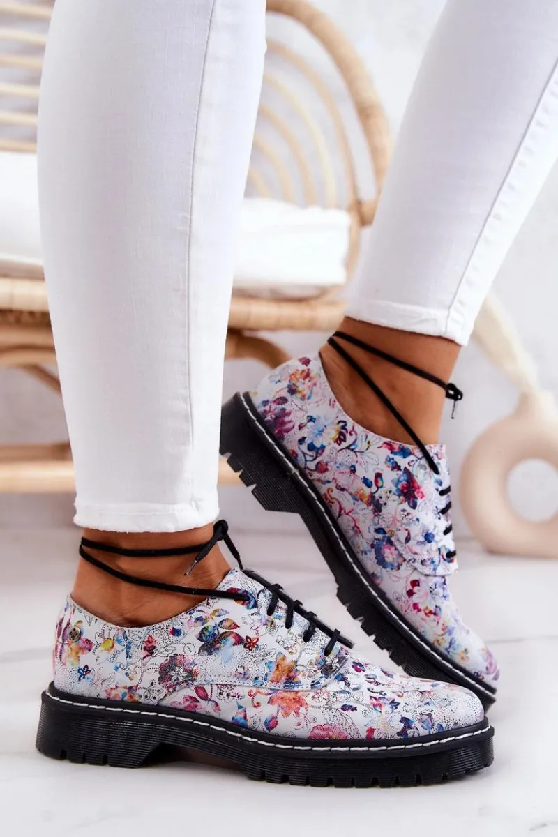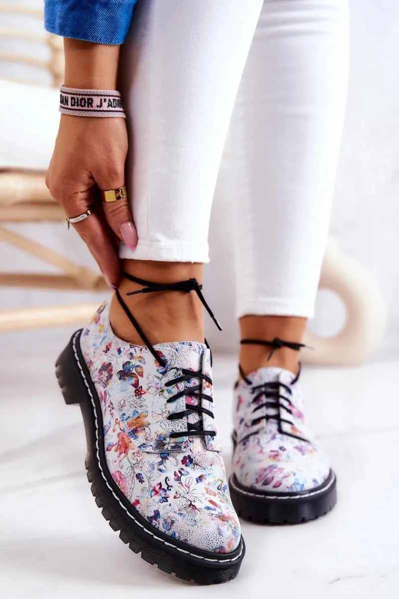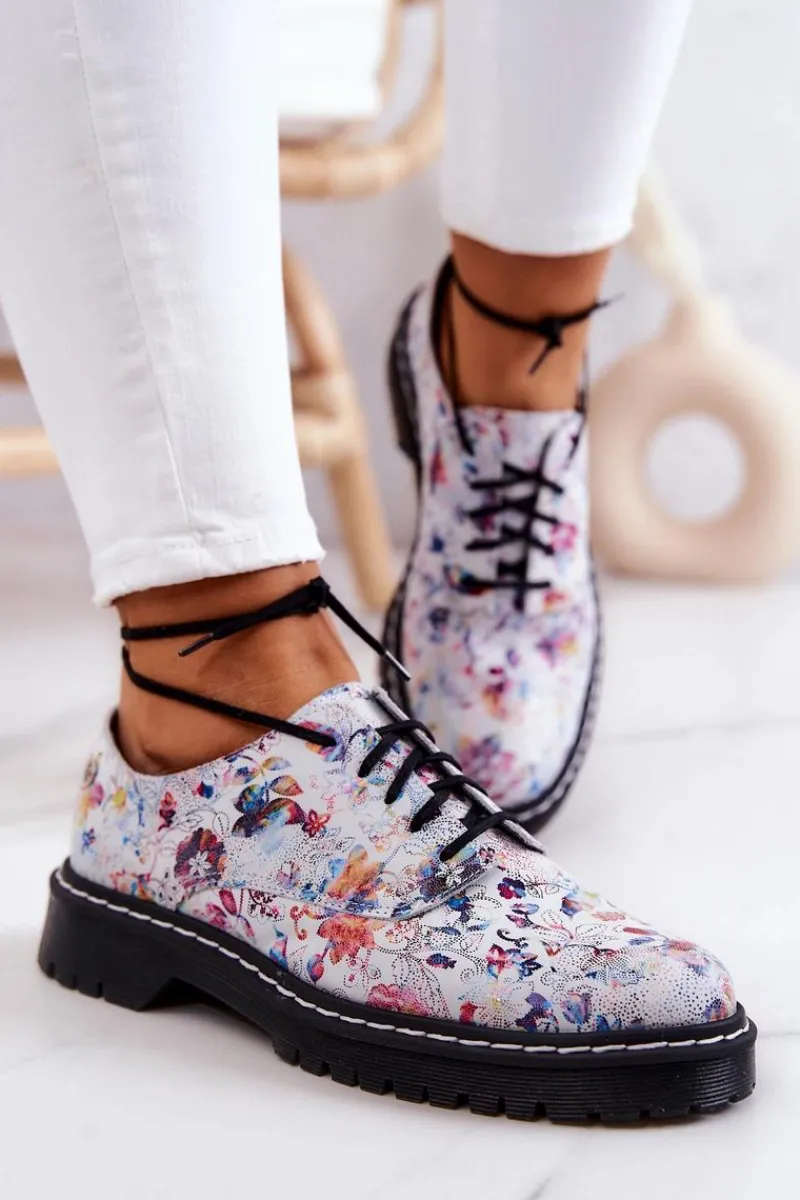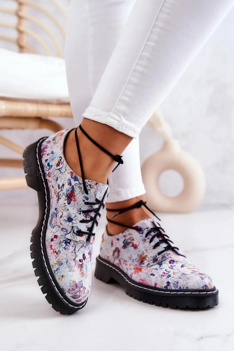 Półbuty Skórzane>Maciejka Damskie Skórzane Półbuty Oxfordy 4087A-38 Białe W Kwiaty