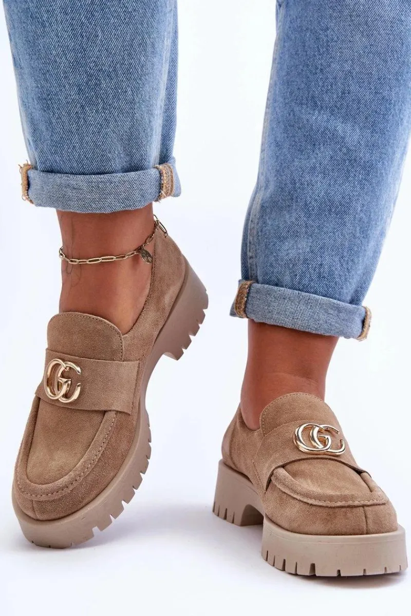 Eleganckie półbuty damskie zostały wykonane ze skóry naturalnej. Osadzone na masywnej platformie i płaskim, stabilnym obcasie. Wkładka ze skóry naturalnej, a podeszwa wykonana z gumowego tworzywa. Model klasyczny, wsuwany. Dodatkowo pod językiem znajduje się gumka ściągająca, która sprawi, że but będzie idealnie dopasowany do stopy. Buty te sprawdzą się w wielu stylizacjach! Koniecznie sprawdź całą naszą kolekcję półbutów! Przy wyborze rozmiaru prosimy sugerować się tabelą rozmiarów.
