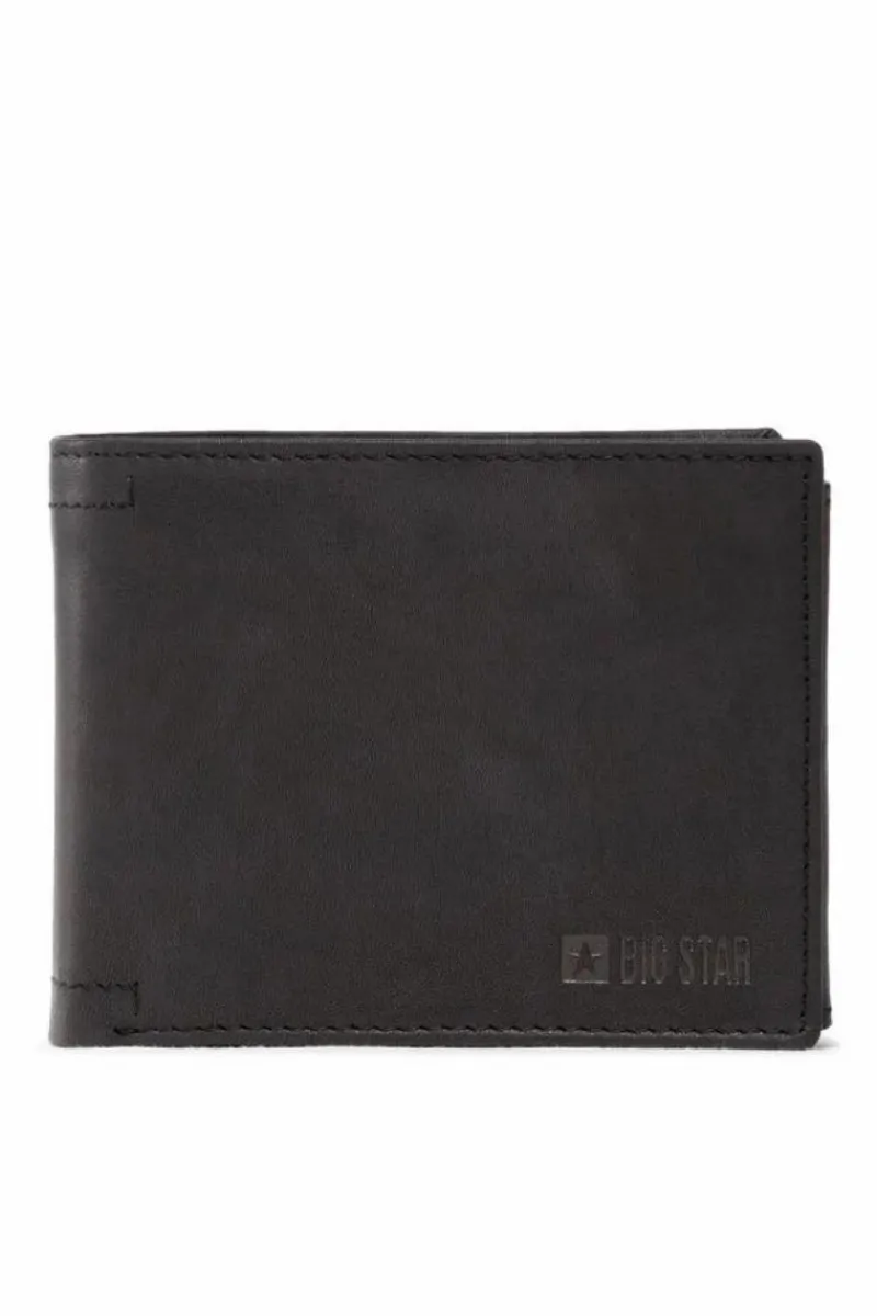 Portfel męski od marki BIG STAR. Wykonany ze skóry naturalnej. Model ten posiada miejsca na katy kredytowe, zamykaną kieszeń na monety oraz przegrodę na banknoty.