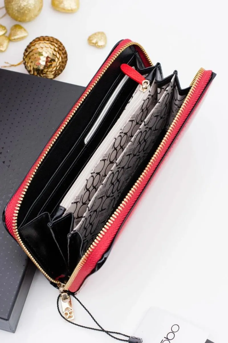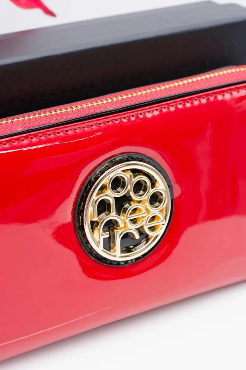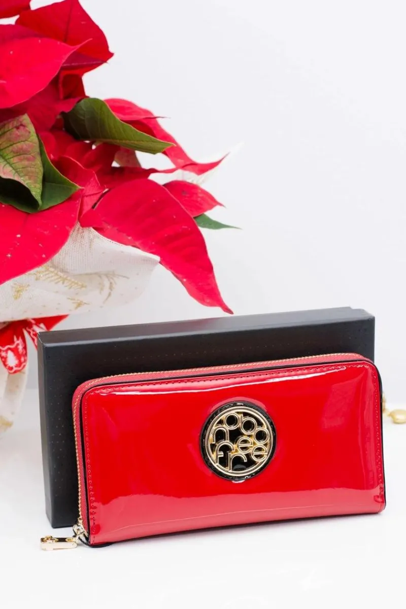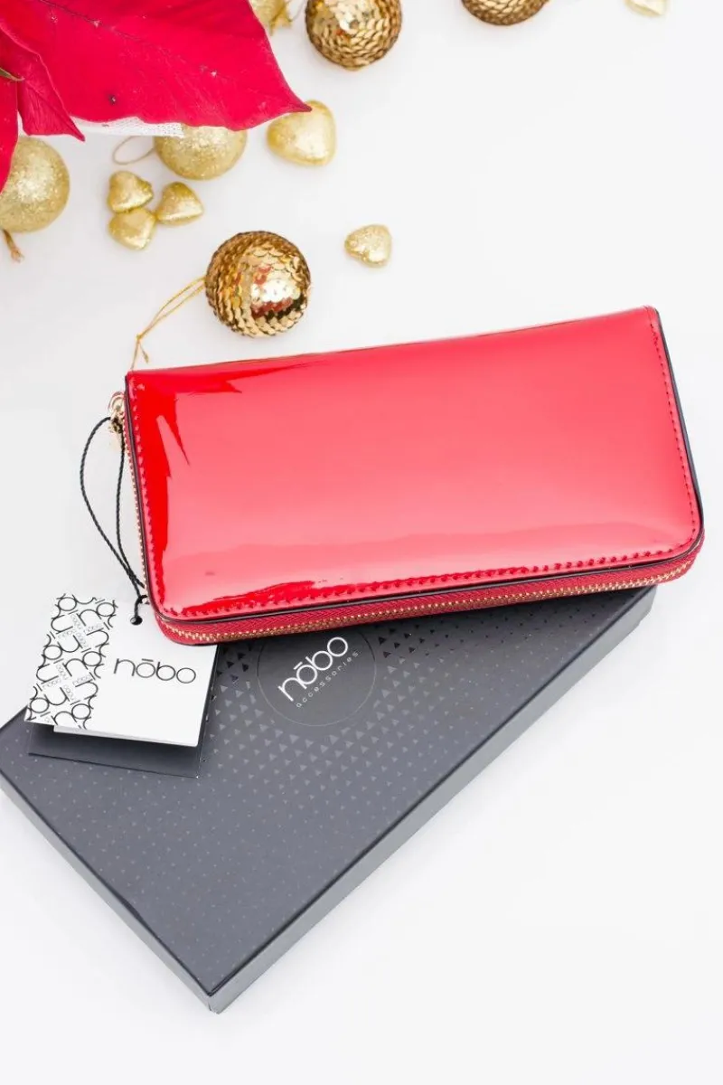 Dopełnieniem każdej kobiecej stylizacji jest nie tylko torebka i buty ale również dobrze dobrany portfel. Portfele renomowanej firmy NOBO są cenione przez wszystkie kobiety. Prezentowany model wykończony jest wysokiej jakości lakierowaną skórą ekologiczną. Portfel zapinany jest złoty suwak. Wewnątrz jednej przegródki znajduje się 8 kieszonek na karty, 1 duża zapinana na suwak komora na bilon oraz 2 dodatkowe przegródki na inne dokumenty.