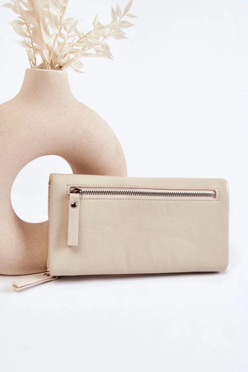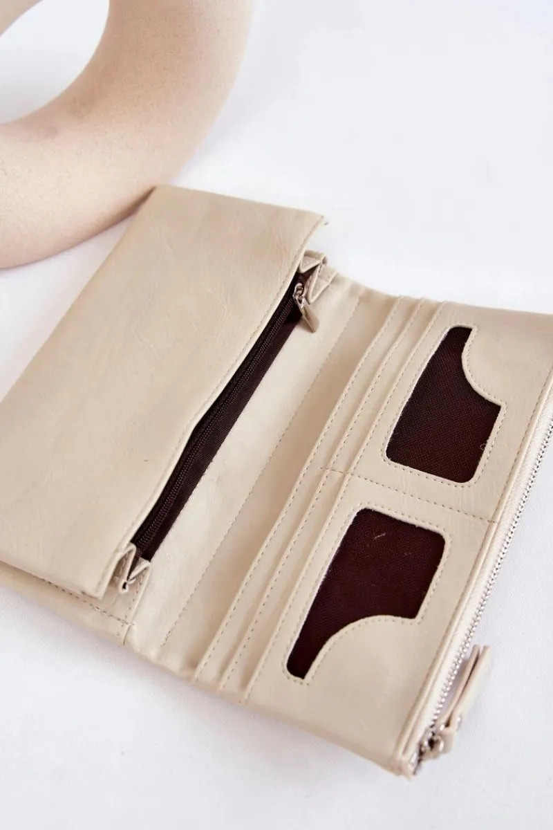 Portfele>Boto Damski Duży Portfel Na Magnes Beżowy Connes