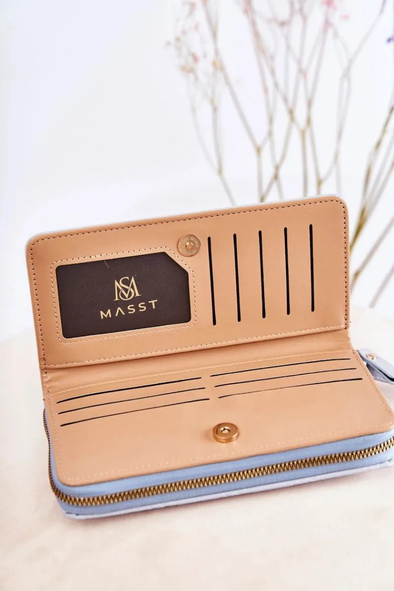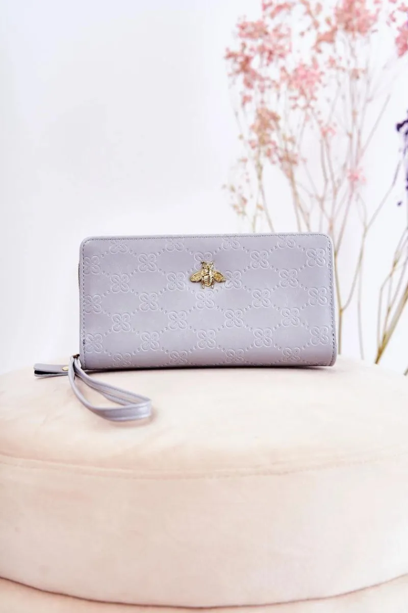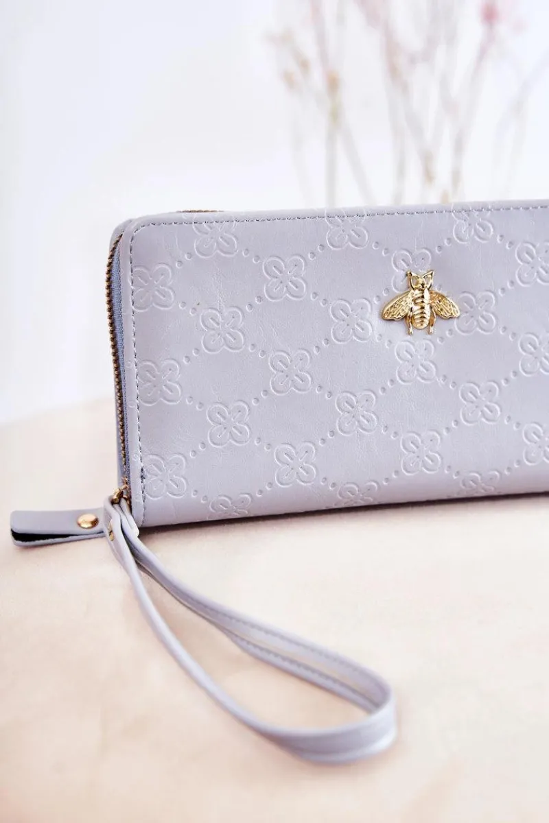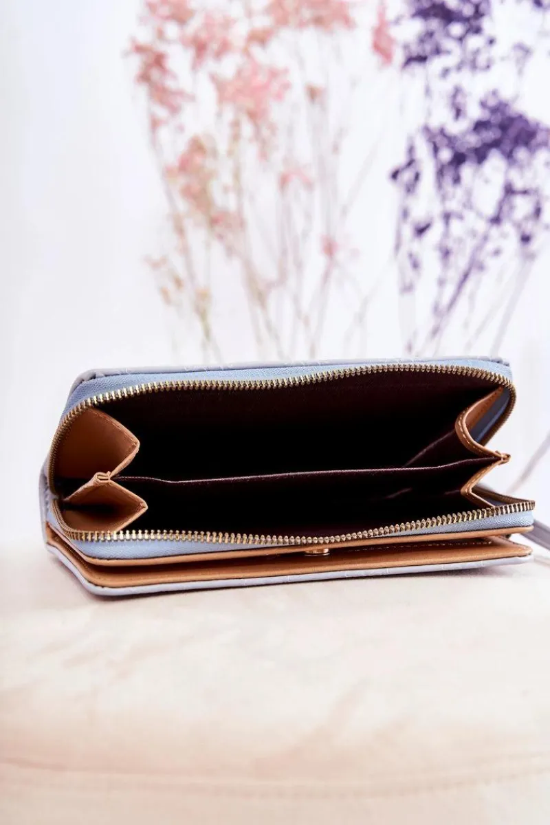 Duży i pojemny damski portfel został wykonany z wysokiej jakości eko skóry z tłoczeniem na całości. Zapinany na magnes oraz suwak. W środku posiada wiele kieszeni na karty czy wizytówki, a także miejsce na fotografię. Zamykana na suwak kieszonka pomieści bilony oraz banknoty. Na przodzie mieści się modny emblemat. Portfel dodatkowo posiada dopinany pasek. Ten niezbędny dodatek każdej kobiety sprawdzi się także idealnie jako prezent!