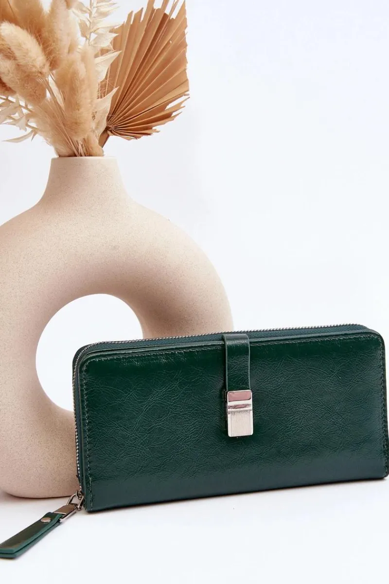 Bardzo funkcjonalny portfel wykonany został z eko skóry. Posiada komorę zamykaną na suwak oraz klapę zapinaną na magnes. W środku znajdują się otwarte kieszonki na wizytówki oraz miejsce na fotografię. Koniecznie musisz go mieć, nie czekaj i kup !