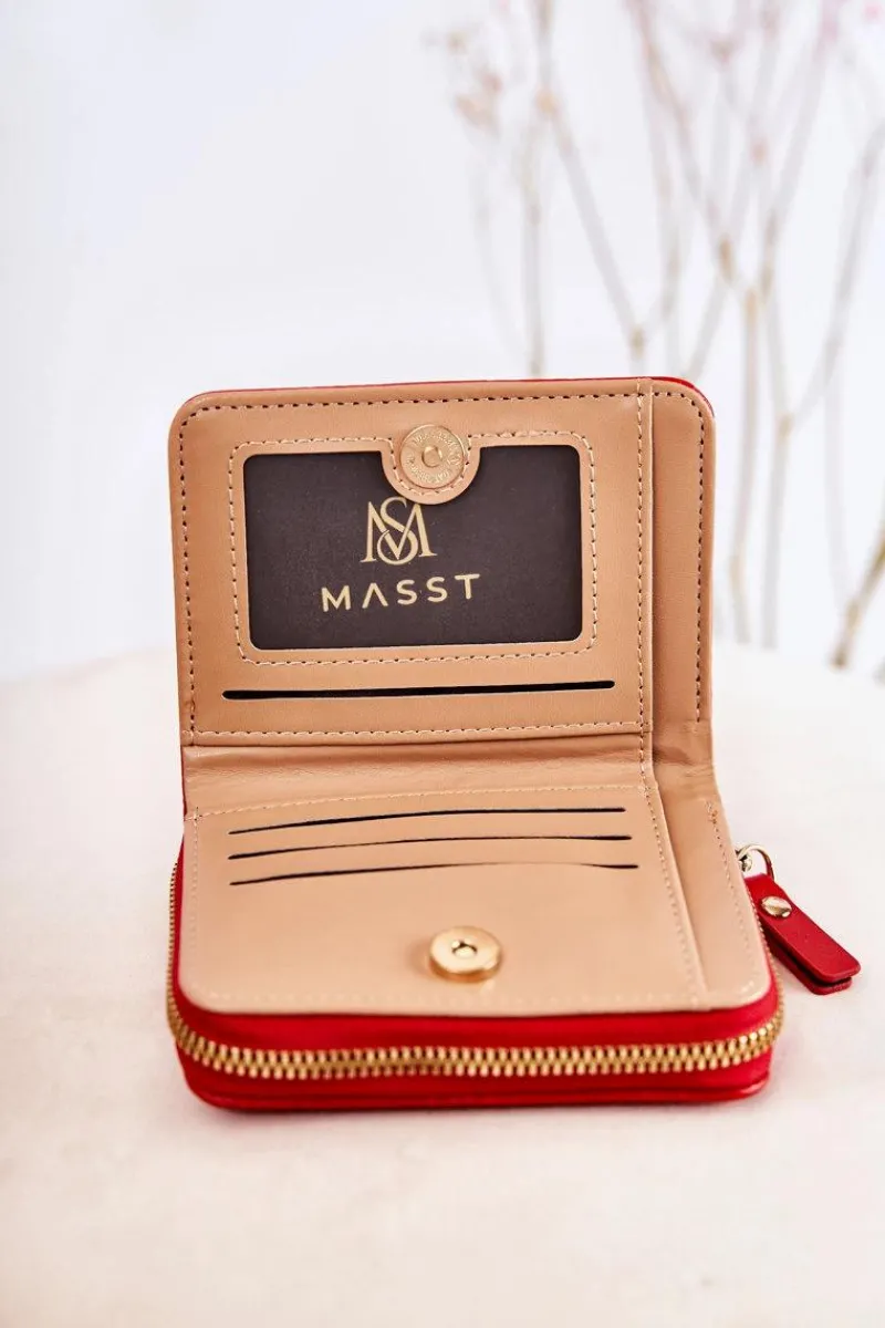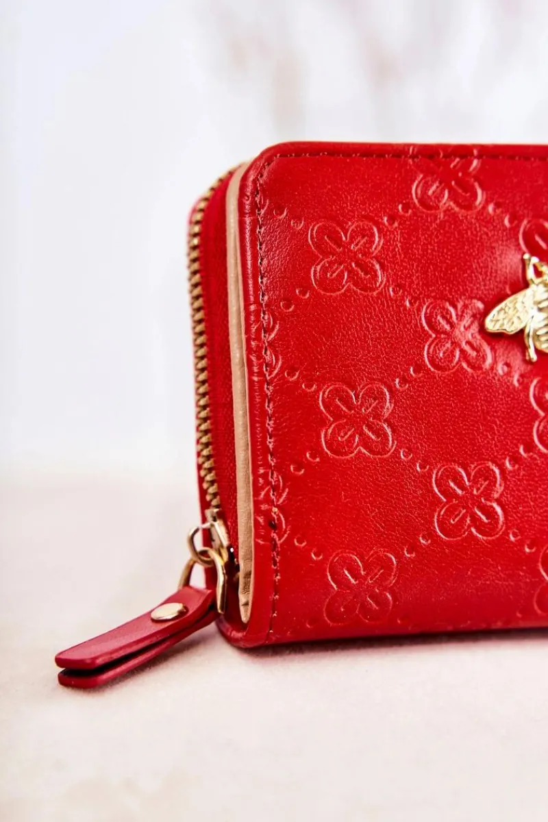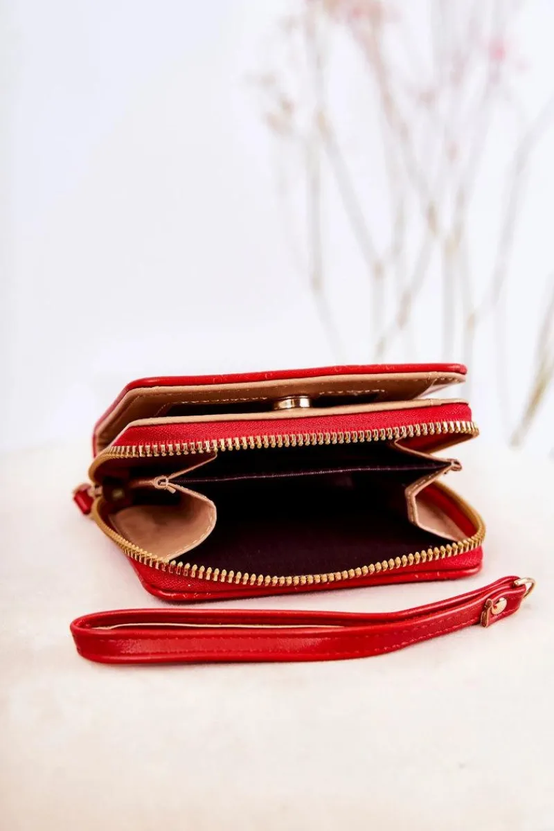 Mały, elegancki portfel został wykonany z eko skóry z tłoczeniem na całości. Zapinany na magnes oraz suwak. W środku posiada kilka kieszeni na karty czy wizytówki, miejsce na banknoty, a także miejsce na fotografię. Zamykana na suwak kieszonka pomieści bilony. Na przodzie umieszczono modny emblemat. Portfel dodatkowo posiada dopinany pasek. Ten niezbędny dodatek każdej kobiety sprawdzi się także idealnie jako prezent!