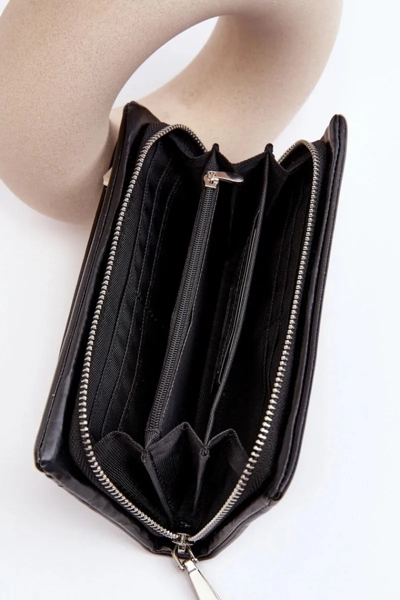 Portfel damski wykonany z eko skóry. Zamykany na wygodny zamek błyskawiczny, co zapewnia łatwe otwieranie i zamykanie. Wewnątrz znajdują się klasyczne przegródki, w tym jedna zasuwana. Dodatkowo model ten posiada odpinany paseczek. To idealny wybór dla osób ceniących prostotę i funkcjonalność!