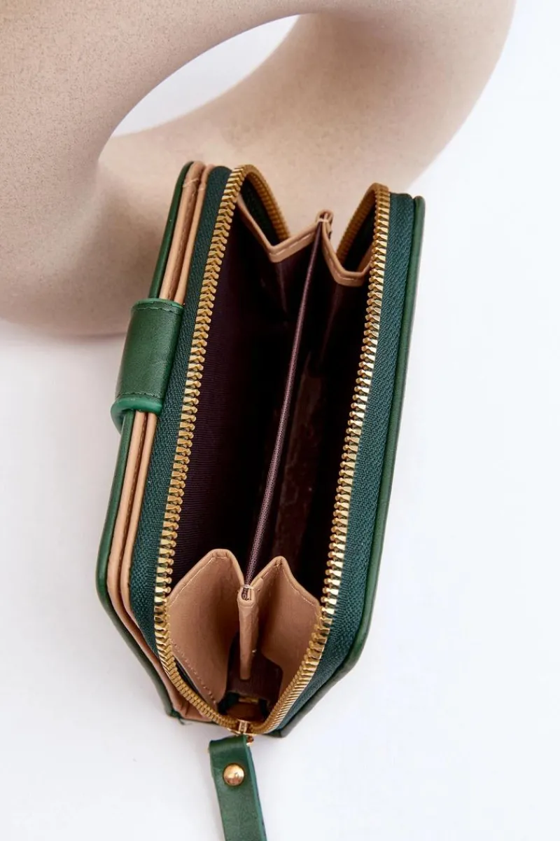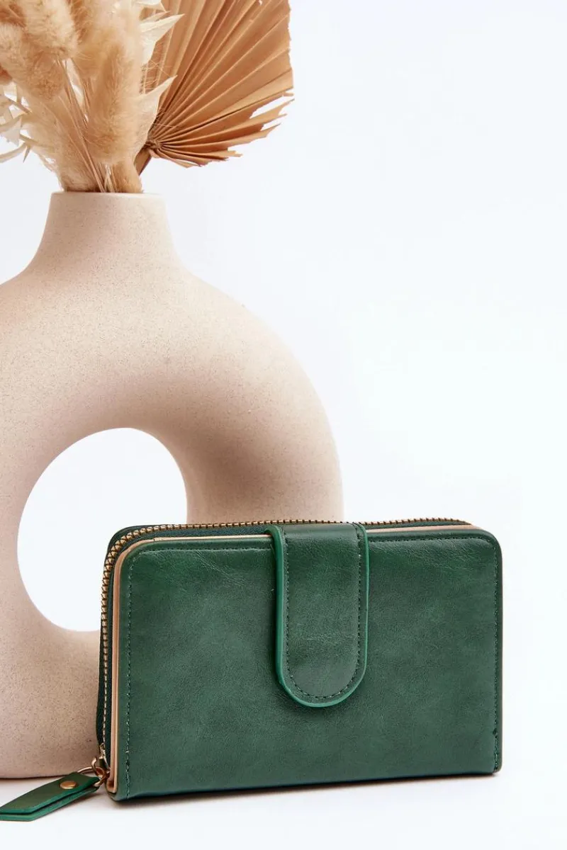 Klasyczny portfel damski wykonany z eko skóry. Model ten posiada kieszeń na monety zamykaną suwakiem. Wewnątrz znajduje się sekcja na banknoty oraz karty. Portfel zapinany jest na magnes. Klasyczny fason z pewnością przypadnie do gustu każdej kobiecie!