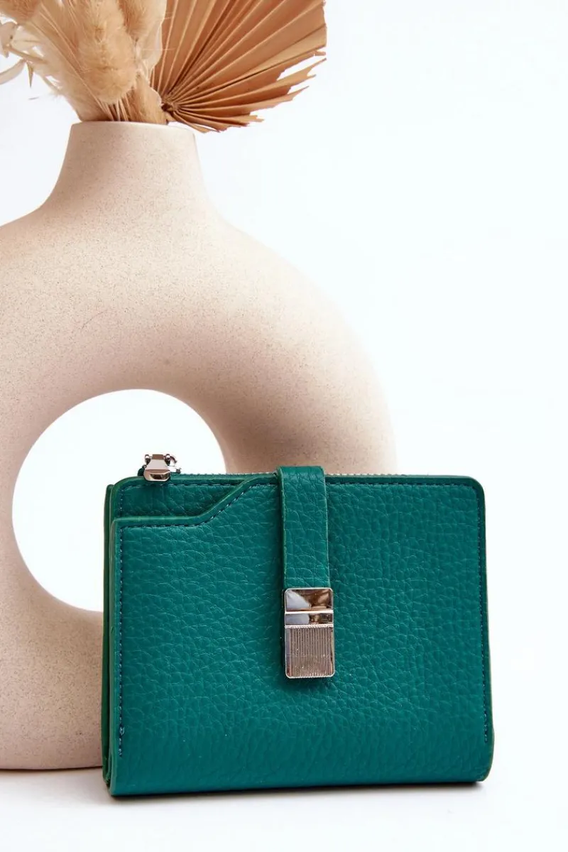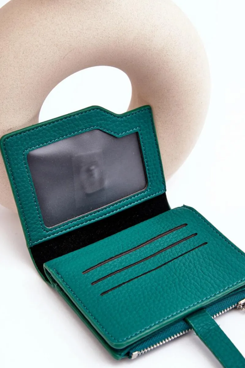 Portfel damski wykonany z eko skóry. Zapinany na klips magnetyczny. W środku miejsce na banknoty, karty i fotografię. Dodatkowa kieszeń zapinana jest suwakiem. Model ten jest niewielki, ale z pewnością pomieści najpotrzebniejsze rzeczy.