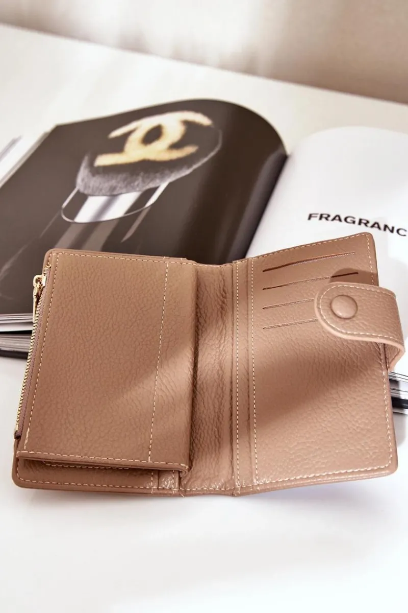 Stylowy portfel damski wykonany z ekologicznej skóry. Ten model zamykany jest na magnes. W środku znajdziesz miejsce na banknoty, karty oraz monety. Model tez z pewnością przypadnie Ci do gustu!