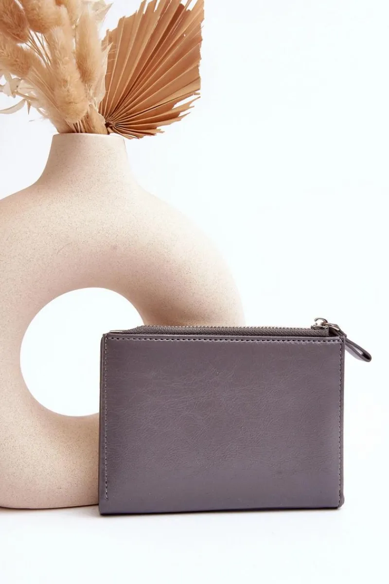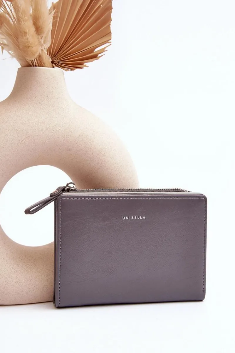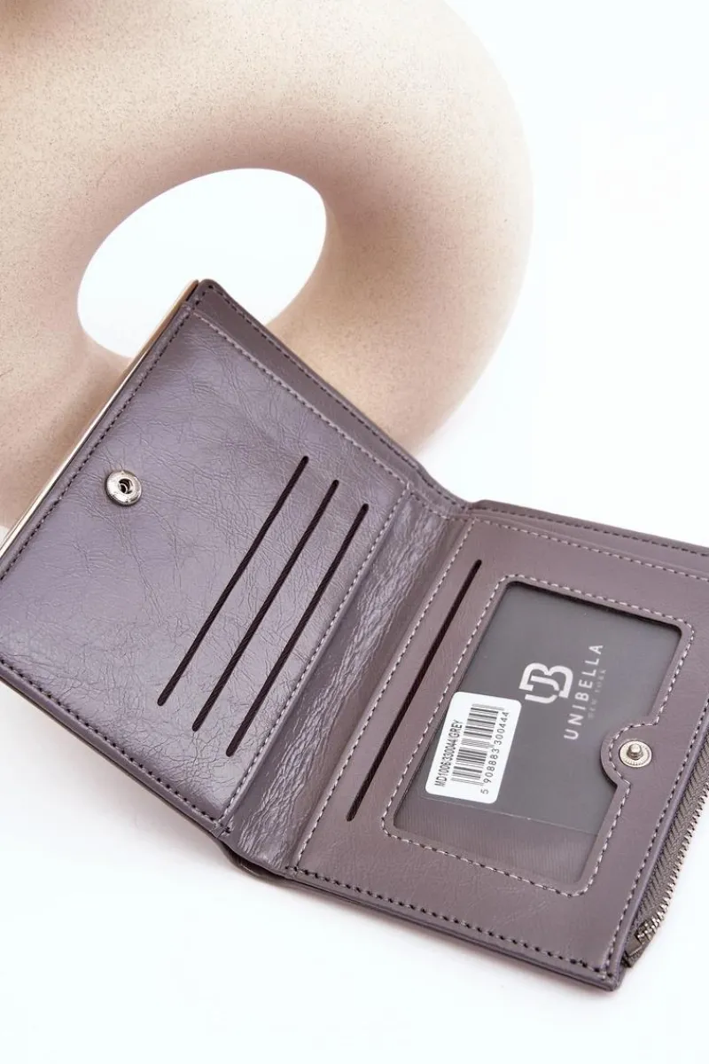 Portfel damski wykonany z połyskującej eko skóry. Zapinany na zatrzask oraz suwak. W środku miejsce na banknoty, karty, fotografię. Model ten posiada osobną kieszeń na monety. Doskonale sprawdzi się jako prezent!