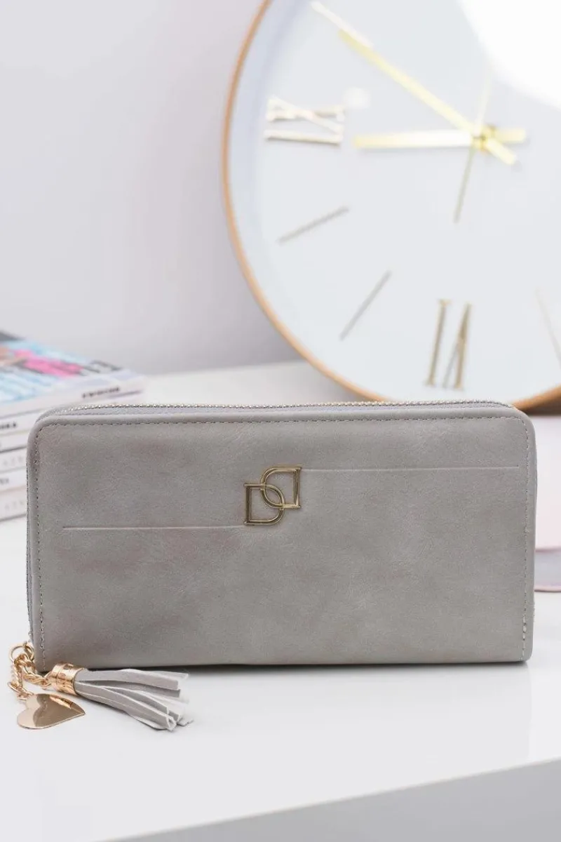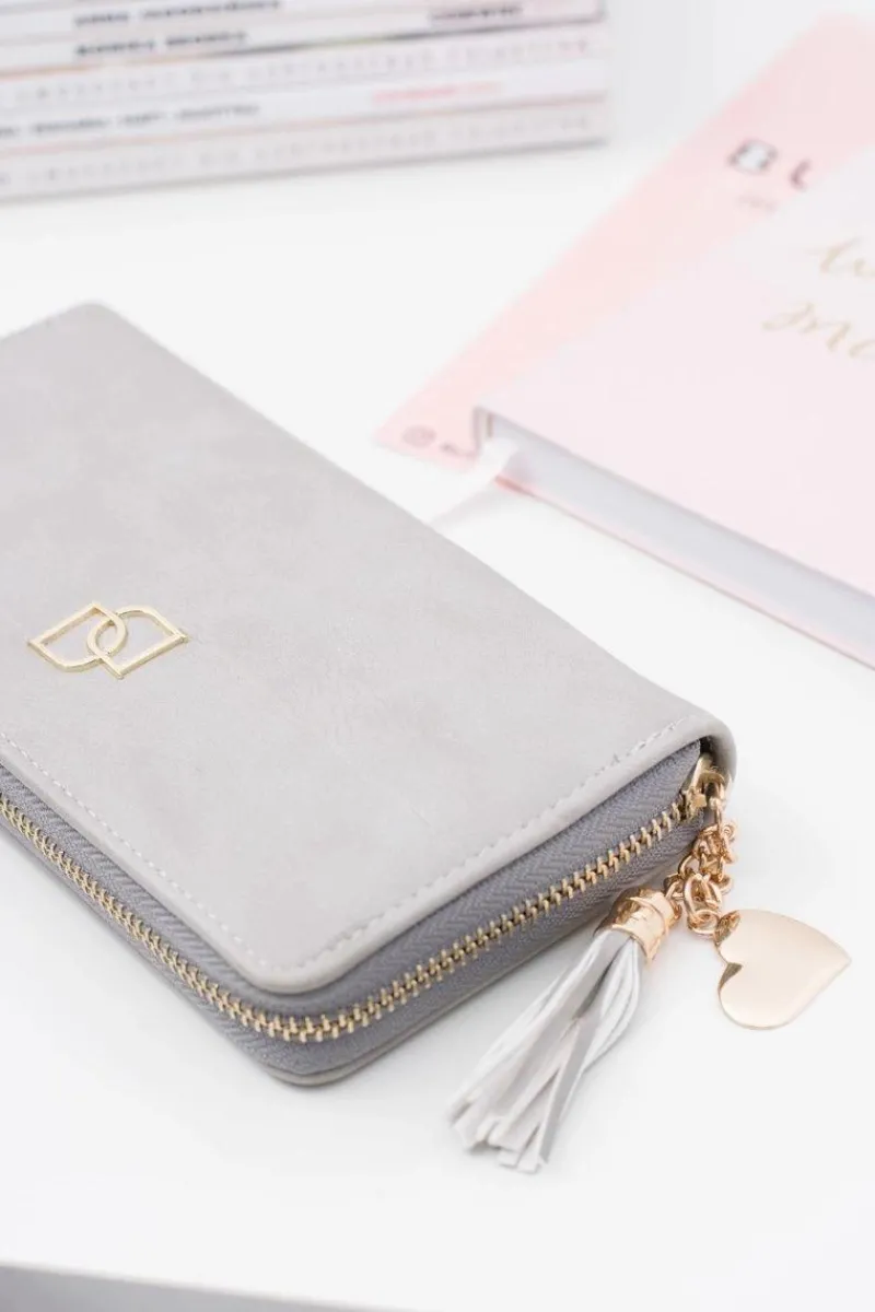 Przedstawiamy piękny portfel dla eleganckich Pań. Produkt ten charakteryzuje wyjątkowy szyk wzorowany na trendach mody. Portfele wykonane przy użyciu tylko najwyższej klasy materiałów. Staranne i piękne wykończenie portfela oddaje niesamowitą dbałość o detale oraz modowy gust. Wewnątrz znajdziemy 3 przegródki, które zapinane są na zamek przyozdobiony brelokiem ze złotym sercem oraz frędzelkami. Jedna z kieszonek zapinana jest na zameczek, która świetni sprawdzi się do przechowywania bilonu, dodatkowo po bokach znajduje się 8 przegródek na karty i dwie na większe dokumenty. Dostępne w kilku kolorach. Nie czekaj i spraw sobie ten wspaniały portfel!