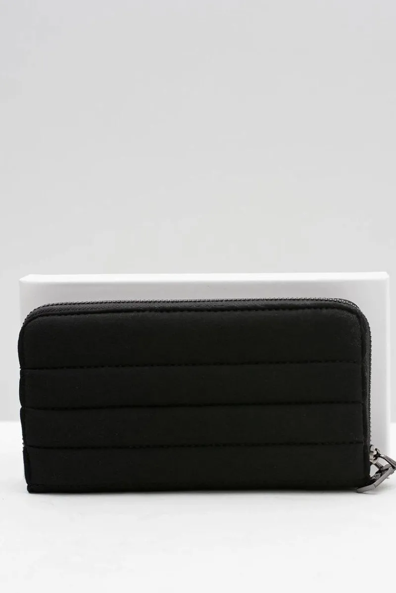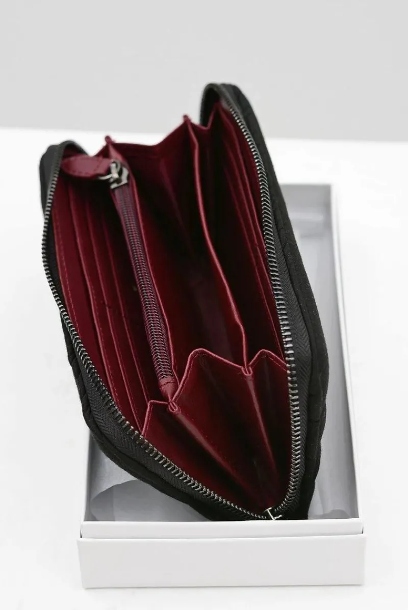 Dopełnieniem każdej kobiecej stylizacji jest nie tylko torebka i buty ale również dobrze dobrany portfel. Portfel wykonany z najwyższej jakości delikatnego materiału tekstylnego. Posiada jedną dużą komorę zapinaną na srebrny suwak, wewnątrz której znajdują się trzy przegródki na banknoty i 10 mniejszych na karty płatnicze oraz inne dokumenty. Dodatkowo jest jeszcze jedna kieszonka zapinana na suwak, idealna na bilon.