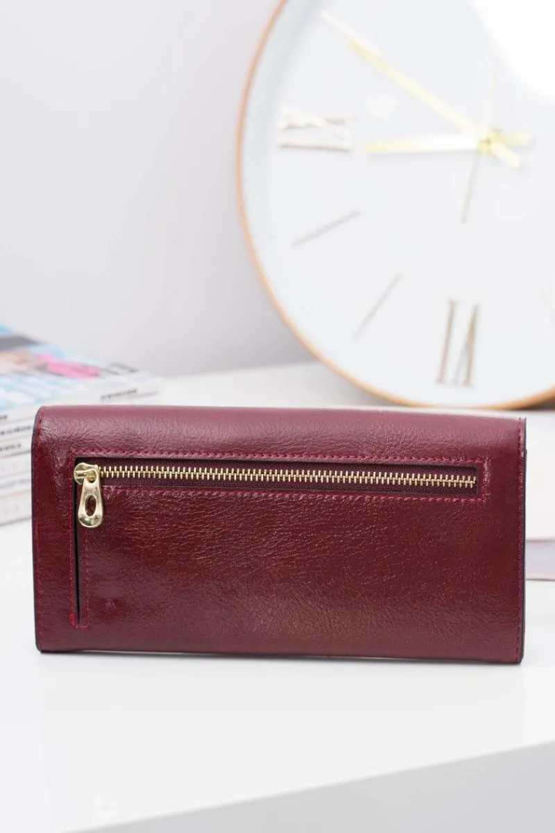 Przedstawiamy piękne portfele dla eleganckich Pań, dostępny w kilku cudownych kolorach. Produkty te charakteryzuje wyjątkowy szyk. Wykonywane są przy użyciu tylko najwyższej klasy materiałów. Staranne i piękne wykończenie każdego portfela oddaje niesamowitą dbałość o detale oraz modowy gust. Portfel posiada zapinanie na zatrzask. Wewnątrz znajdują się dwie kieszonki zapinane na zamek, 4 większe przegródki na różne drobiazgi, dokumenty, 6 przegródek na karty oraz miejsce na zdjęcie. Na tylnej części portfela znajduje się dodatkowa kieszeń zapinana na piękny złoty zamek.