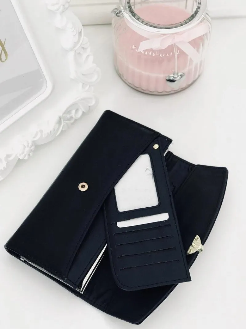 Przedstawiamy piękne portfele dla eleganckich Pań, dostępne w kilku cudownych kolorach. Produkty te charakteryzuje wyjątkowa prostota i elegancja. Wykonywane są przy użyciu najwyższej klasy materiałów. Staranne i piękne wykończenie każdego portfela oddaje niesamowitą dbałość o detale oraz modowy gust. Portfel posiada zapinanie na zatrzask. Wewnątrz znajdują się dwie kieszonki, jedna zapinana na zamek, aż 8 przegródek na karty oraz miejsce na zdjęcie.
