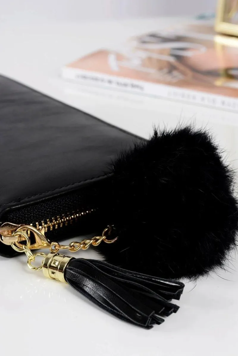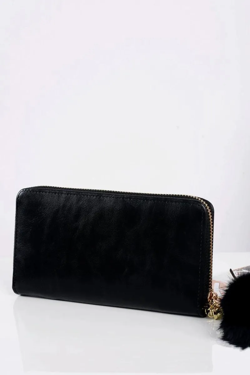 Przedstawiamy piękny portfely dla eleganckich Pań. Produkt ten charakteryzuje wyjątkowy szyk wzorowany z włoskich salonów mody. Wykonane są przy użyciu tylko najwyższej klasy materiałów. Staranne i piękne wykończenie portfela oddaje niesamowitą dbałość o detale oraz modowy gust. Portfel posiada jedną duża komorę zapinaną na złoty zamek, natomiast wewnątrz znajdują się 3 duże komory, jedna na bilon oraz 8 przegródek na karty. Wspaniałym akcentem jest brelok w postaci futrzanej kuleczki.