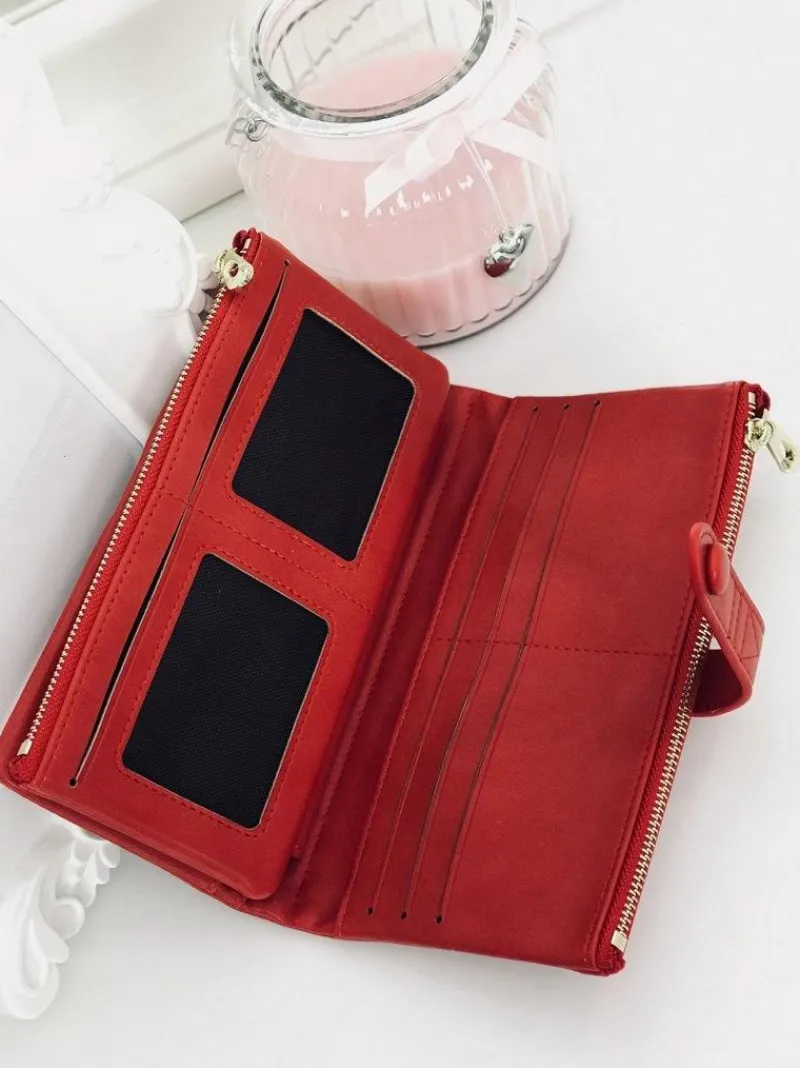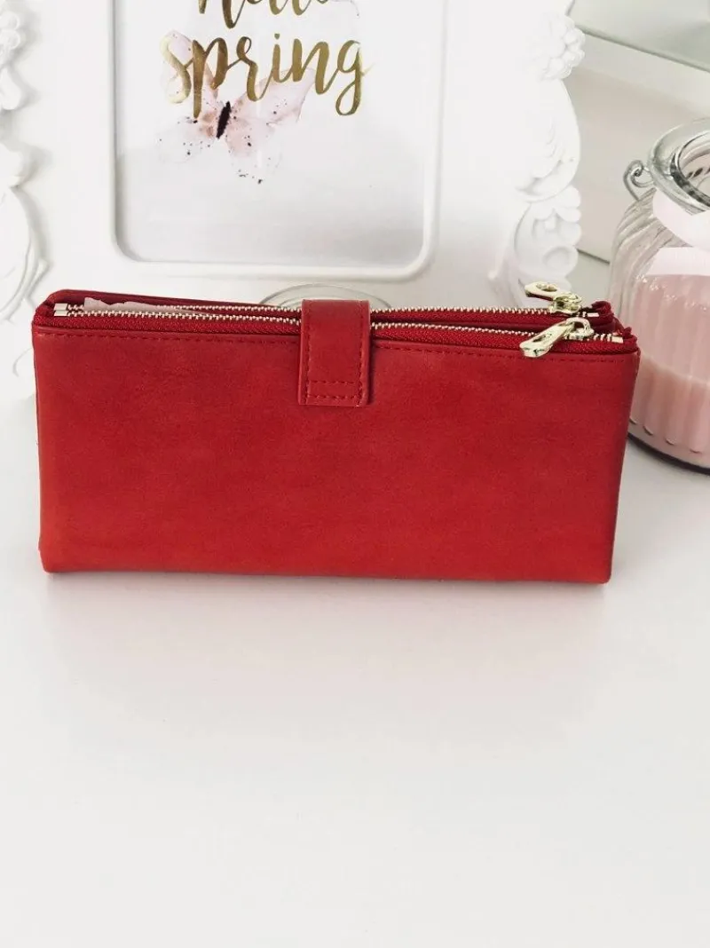 Przedstawiamy piękne portfele dla eleganckich Pań, dostępne w kilku cudownych kolorach. Produkty te charakteryzuje wyjątkowa prostota i elegancja. Wykonywane są przy użyciu najwyższej klasy materiałów. Staranne i piękne wykończenie każdego portfela oddaje niesamowitą dbałość o detale oraz modowy gust. Portfel posiada zapinanie na zatrzask. Wewnątrz znajdują się dwie kieszonki zapinane na zamek, 2 większe przegródki na różne drobiazgi, dokumenty, aż 12 przegródek na karty oraz miejsce na zdjęcie.