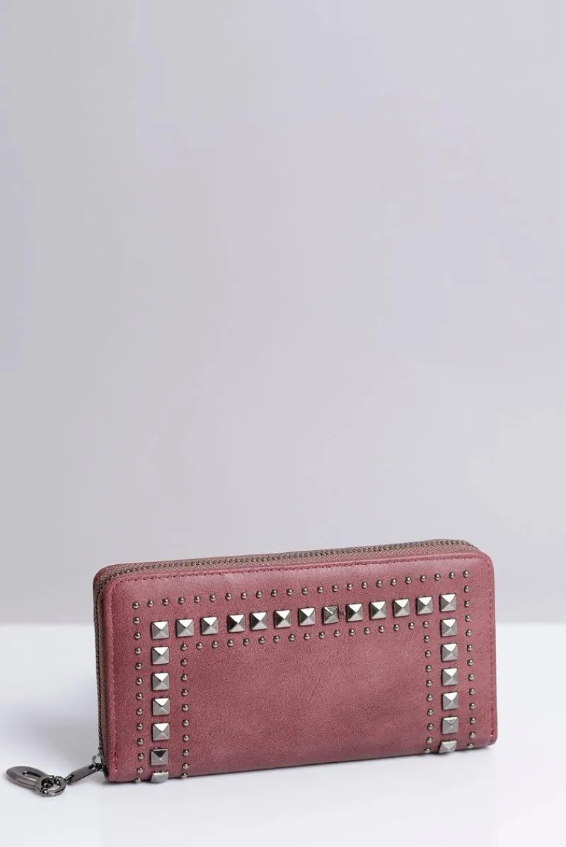 Przedstawiamy piękne portfele dla eleganckich Pań. Produkty te charakteryzuje wyjątkowy szyk wzorowany z włoskich salonów mody. Wykonywane są przy użyciu tylko najwyższej klasy materiałów, które podkreślają światowy i wielkomiejski styl. Staranne i piękne wykończenie każdego portfela ozdobnymi ćwiekami oddaje niesamowitą dbałość o detale oraz modowy gust. Portfel posiada zapinanie na zamek, trzy duże kieszonki, jedną małą zapinaną na zamek oraz 8 przegródek na karty.