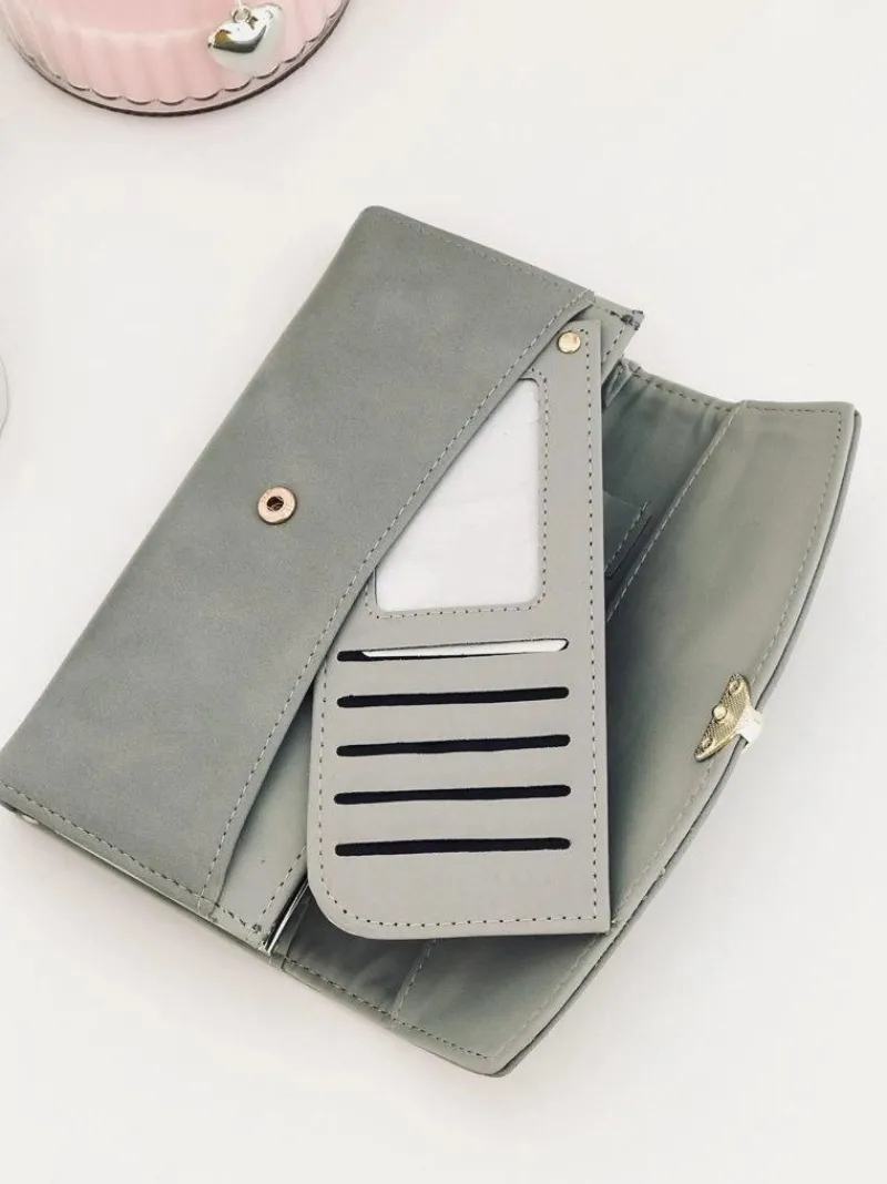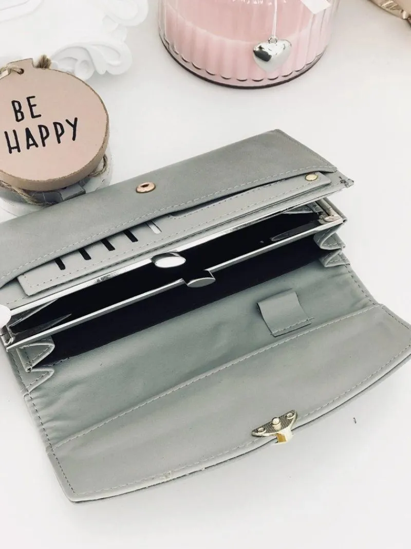 Przedstawiamy piękne portfele dla eleganckich Pań, dostępne w kilku cudownych kolorach. Produkty te charakteryzuje wyjątkowa prostota i elegancja. Wykonywane są przy użyciu najwyższej klasy materiałów. Staranne i piękne wykończenie każdego portfela oddaje niesamowitą dbałość o detale oraz modowy gust. Portfel posiada zapinanie na zatrzask. Wewnątrz znajdują się dwie kieszonki, jedna zapinana na zamek, aż 8 przegródek na karty oraz miejsce na zdjęcie.
