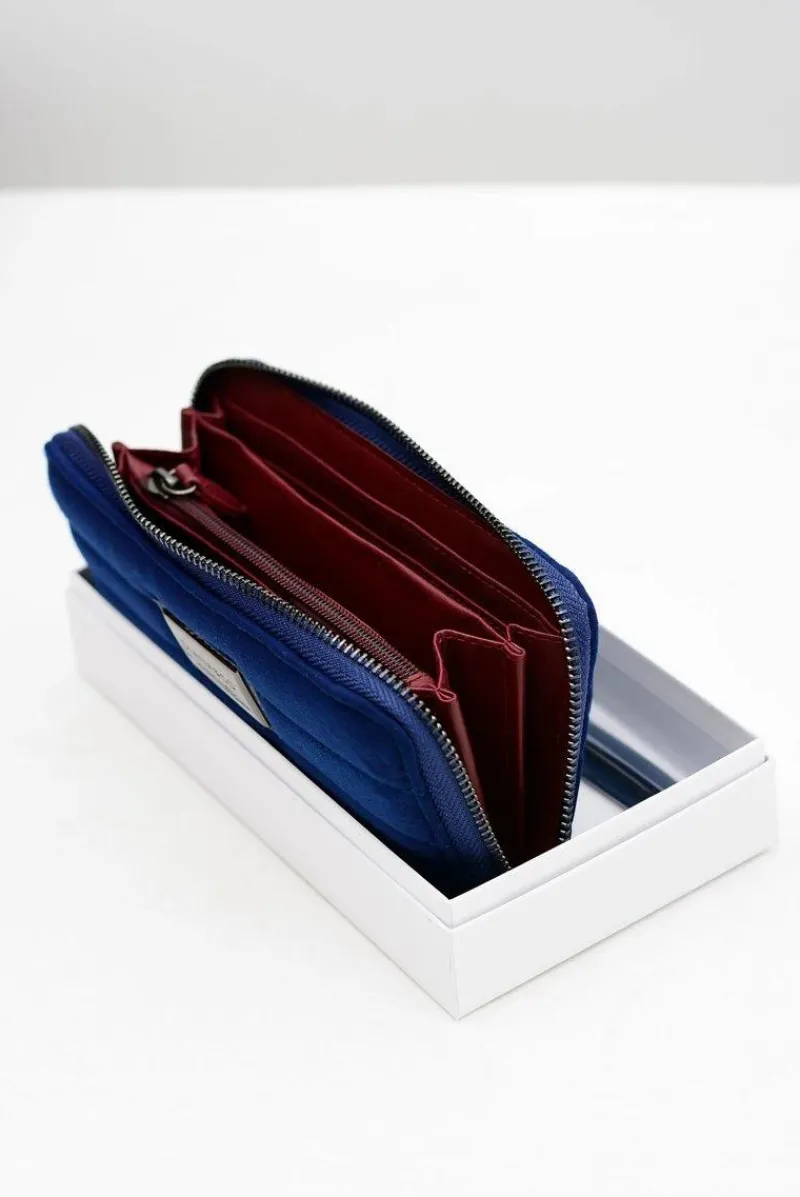 Dopełnieniem każdej kobiecej stylizacji jest nie tylko torebka i buty ale również dobrze dobrany portfel. Portfel wykonany z najwyższej jakości delikatnego materiału tekstylnego. Posiada jedną dużą komorę zapinaną na srebrny suwak, wewnątrz której znajdują się trzy przegródki na banknoty i 10 mniejszych na karty płatnicze oraz inne dokumenty. Dodatkowo jest jeszcze jedna kieszonka zapinana na suwak, idealna na bilon. Nasza propozycja będzie idealnym uzupełnieniem każdej Twojej stylizacji!