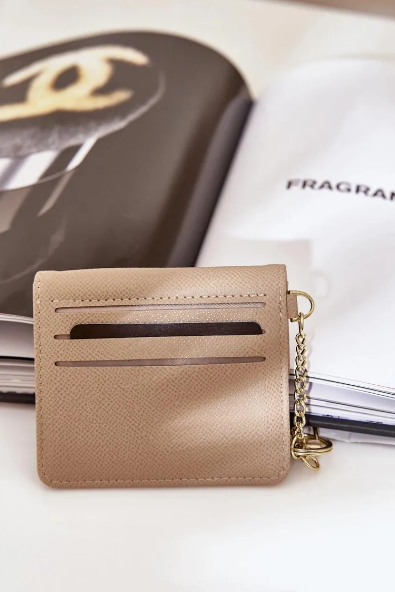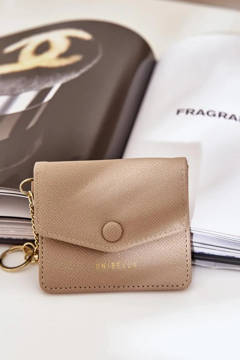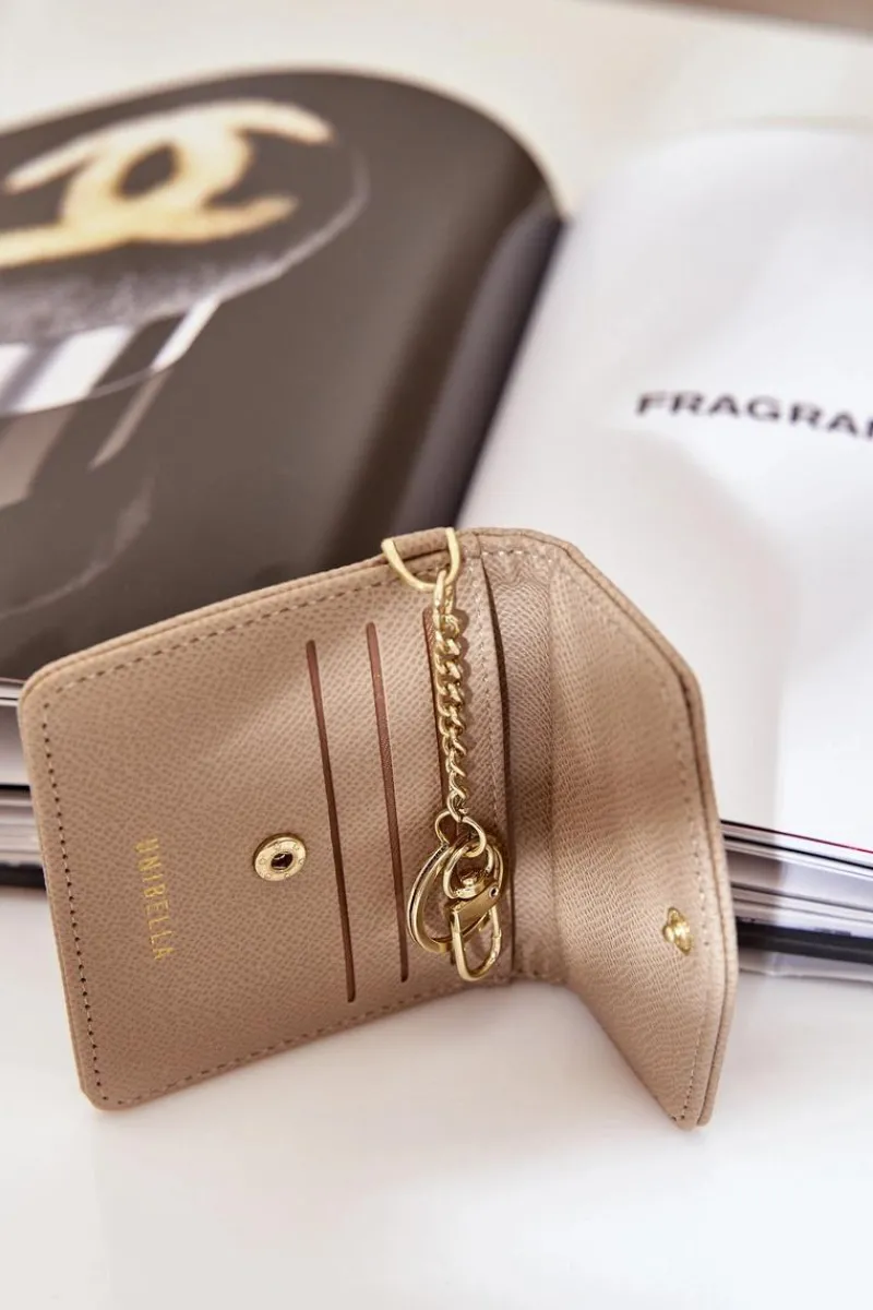 Praktyczne i eleganckie etui na karty wykonane z eko skóry. Zapinane na zatrzask, zapewnia wygodę i bezpieczeństwo przechowywania. Dodatkowym atutem jest ozdobny złoty brelok. Stylowy i funkcjonalny dodatek, idealny do codziennego użytku.