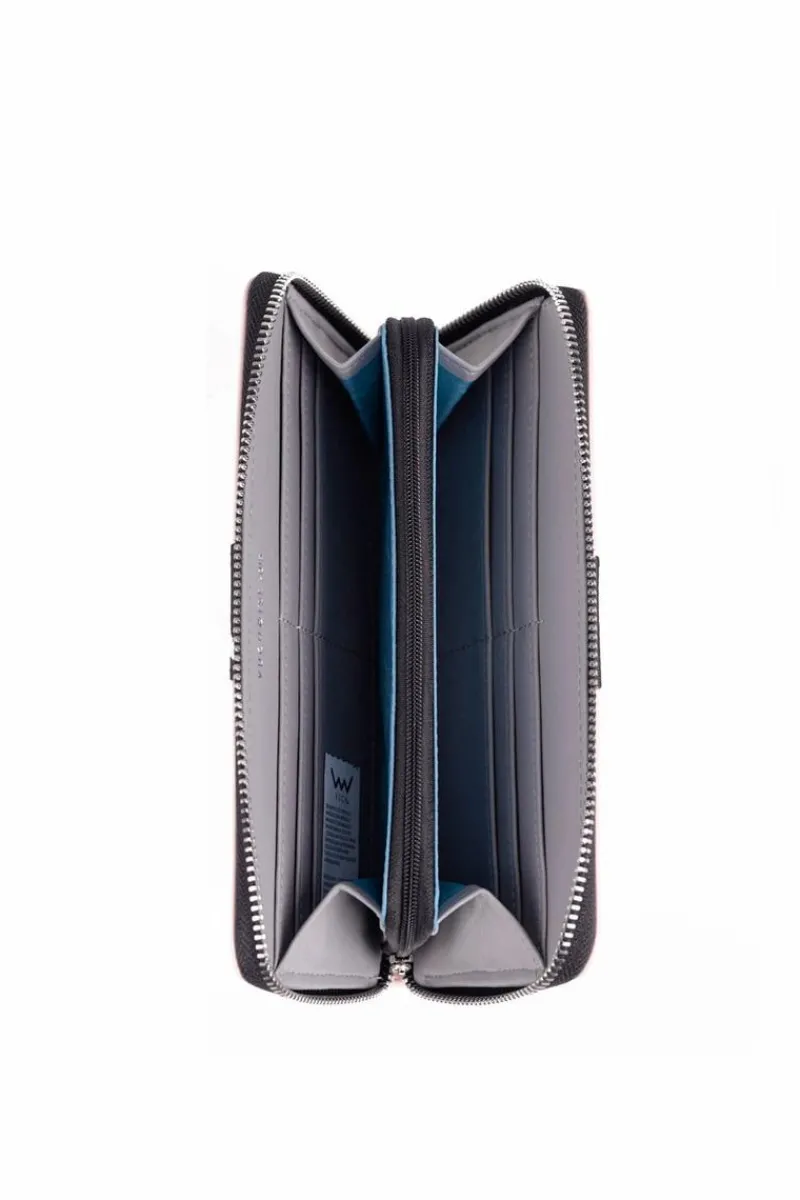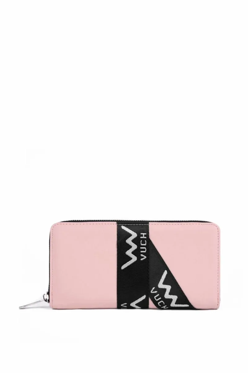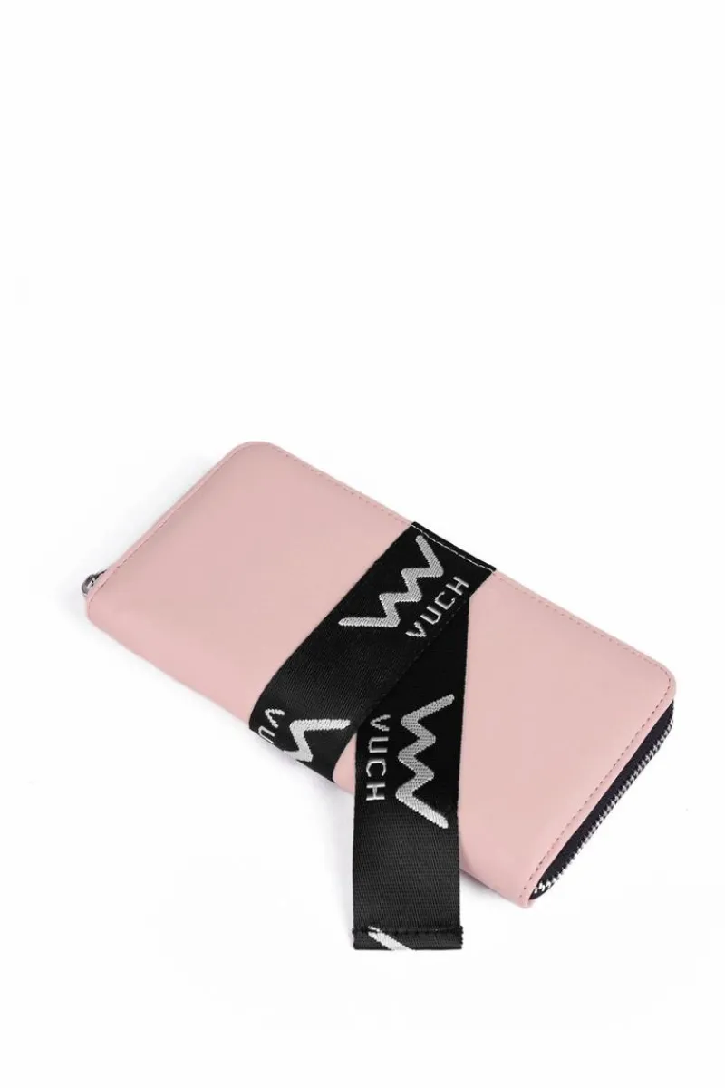 Piękny portfel wykonany z eko skóry z dodatkiem wszytego materiałowego paska z logo. Zapinany na suwak. W środku posiada mniejsze otwarte kieszenie na wizytówki czy karty kredytowe oraz miejsce na banknoty. Wewnątrz także znajduje się kieszeń zamykana na suwak na bilony. Wyjątkowy model, który zachwyci niejedną osobę powinien być Twój! Nie zwlekaj i kup już dziś!