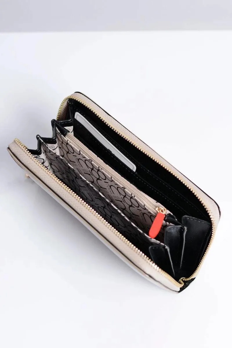 Dopełnieniem każdej kobiecej stylizacji jest nie tylko torebka i buty ale również dobrze dobrany portfel. Portfele renomowanej firmy NOBO są cenione przez wszystkie kobiety. Prezentowany model wykończony jest wysokiej jakości lakierowaną skórą ekologiczną. Portfel zapinany jest na jeden złoty suwak. Wewnątrz znajduje się 8 kieszonek na karty, 1 duża zapinana na suwak komora na bilon oraz 3 dodatkowe przegródki na inne dokumenty.