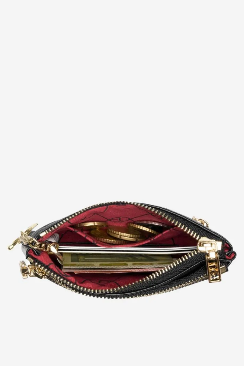 Portfel damski wykonany ze skóry naturalnej. Model ten posiada trzy kieszonki zapinane suwakami. Z przodu logo marki Nobo. Zapakowany w czerwone pudełko, idealnie sprawdzi sie na prezent dla bliskiej osoby!