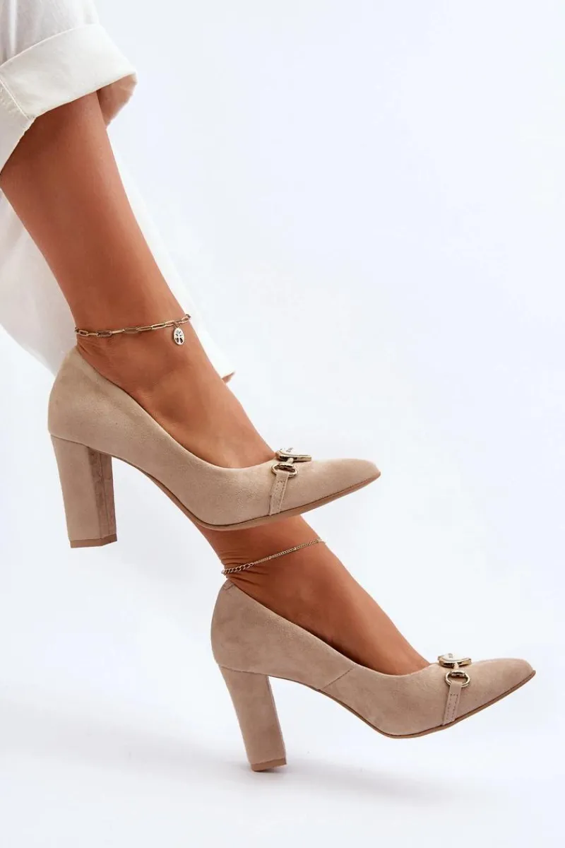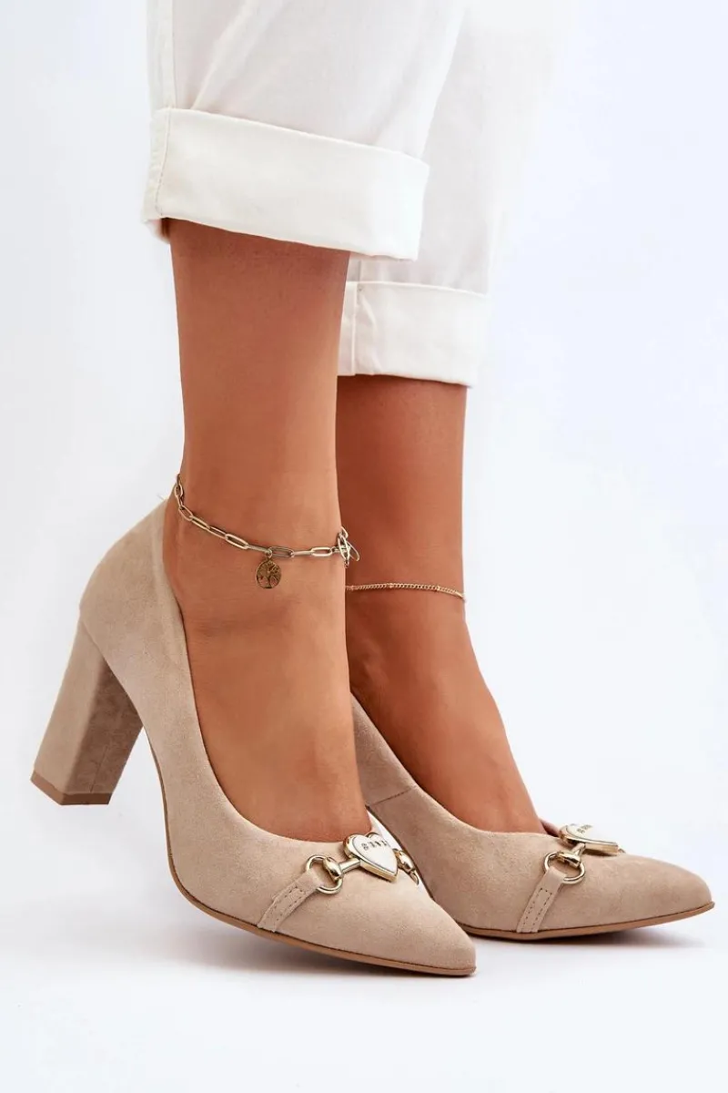 Czółenka wykonane z naturalnego zamszu prezentują elegancki design, który z pewnością przyciąga uwagę. Obcas w postaci słupka i noskami w szpic, zapewniają one zarówno stylowy wygląd, jak i wygodę noszenia. Dodatkowy urok dodaje im ozdoba w postaci serca umieszczona z przodu, nadając subtelnego romantycznego akcentu. Idealne na wiele okazji, te czółenka stanowią niezawodny element garderoby każdej kobiety! Przy wyborze rozmiaru prosimy sugerować się tabelą rozmiarów.