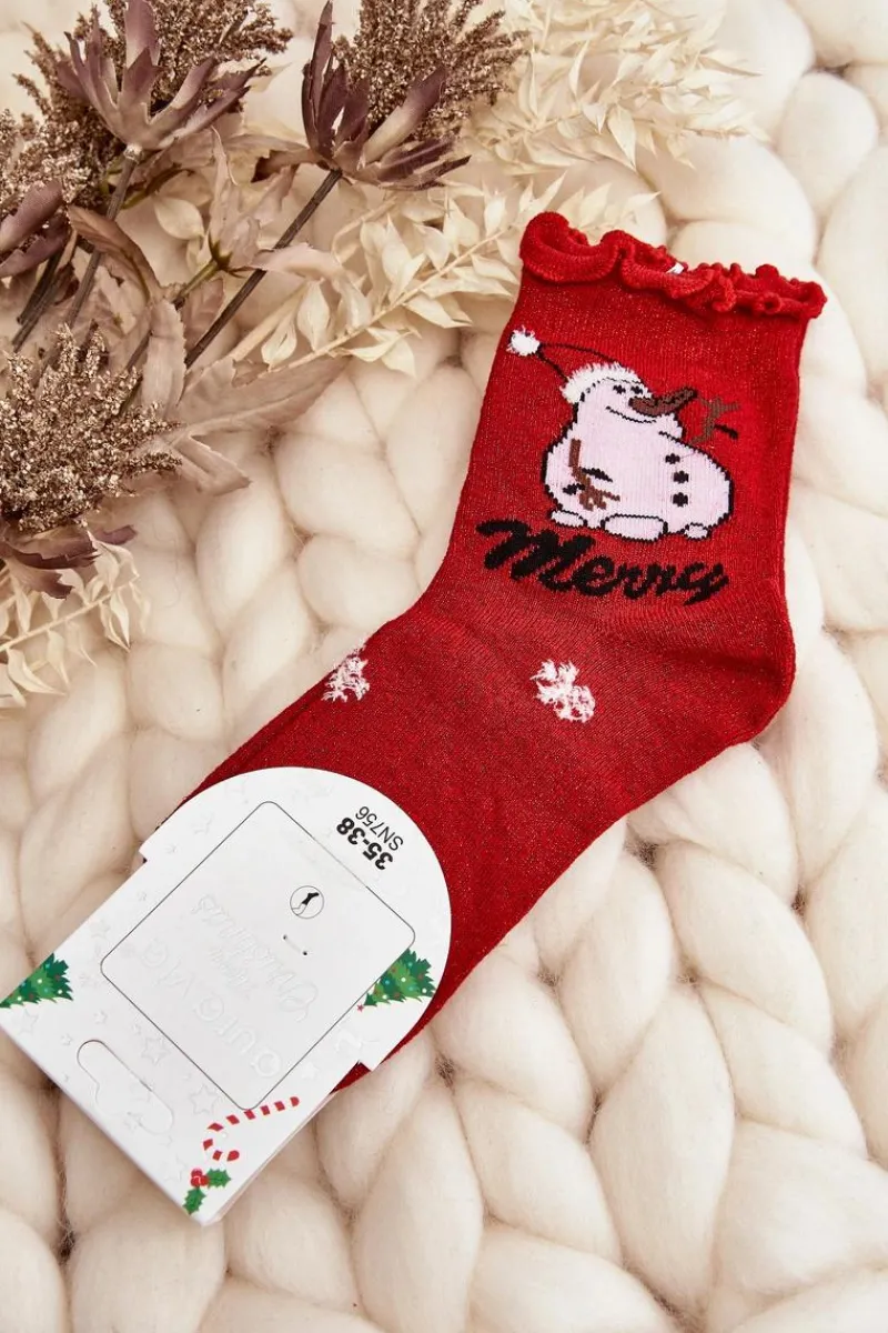 Damskie błyszczące skarpety z motywem świątecznym. Idealnie sprawdzą się jako dodatek do prezentu dla bliskiej osoby! Koniecznie powinnaś zakupić ten model!